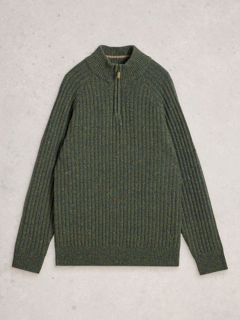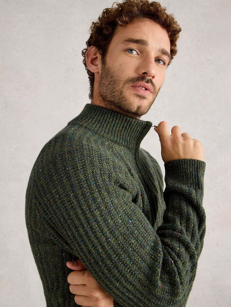 Cotton Blend Chunky Zip Neck Jumper