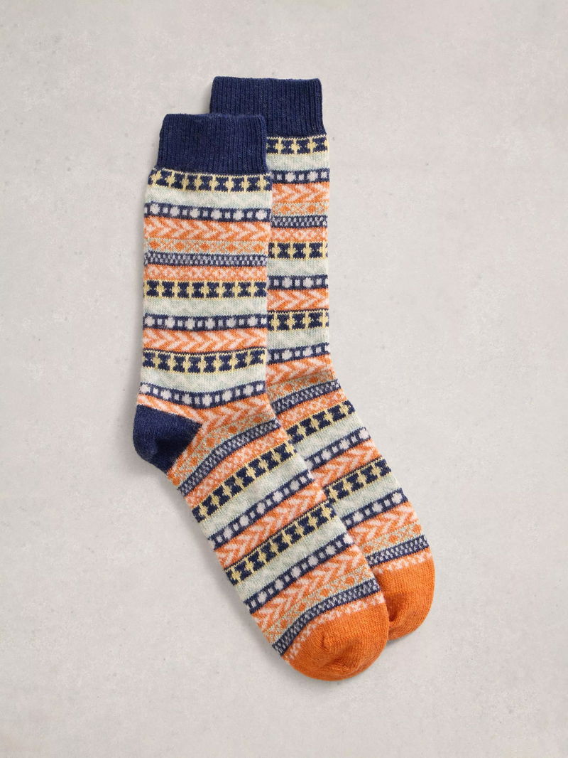 Fair Isle Stripe Wool Rich Socks, Orange/Multi