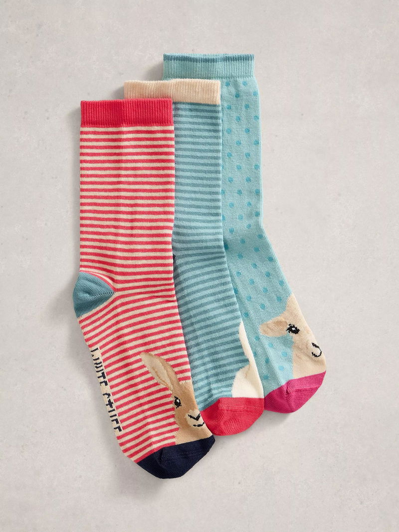 Farmyard Ankle Socks, Pack Of 3, Blue/Multi