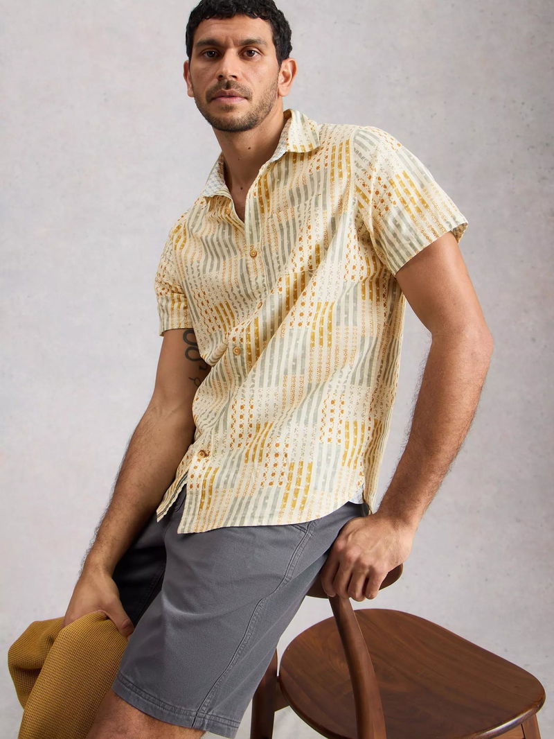 Finsbury Cotton Poplin Regular Fit Abstract Print Shirt, Yellow/Multi