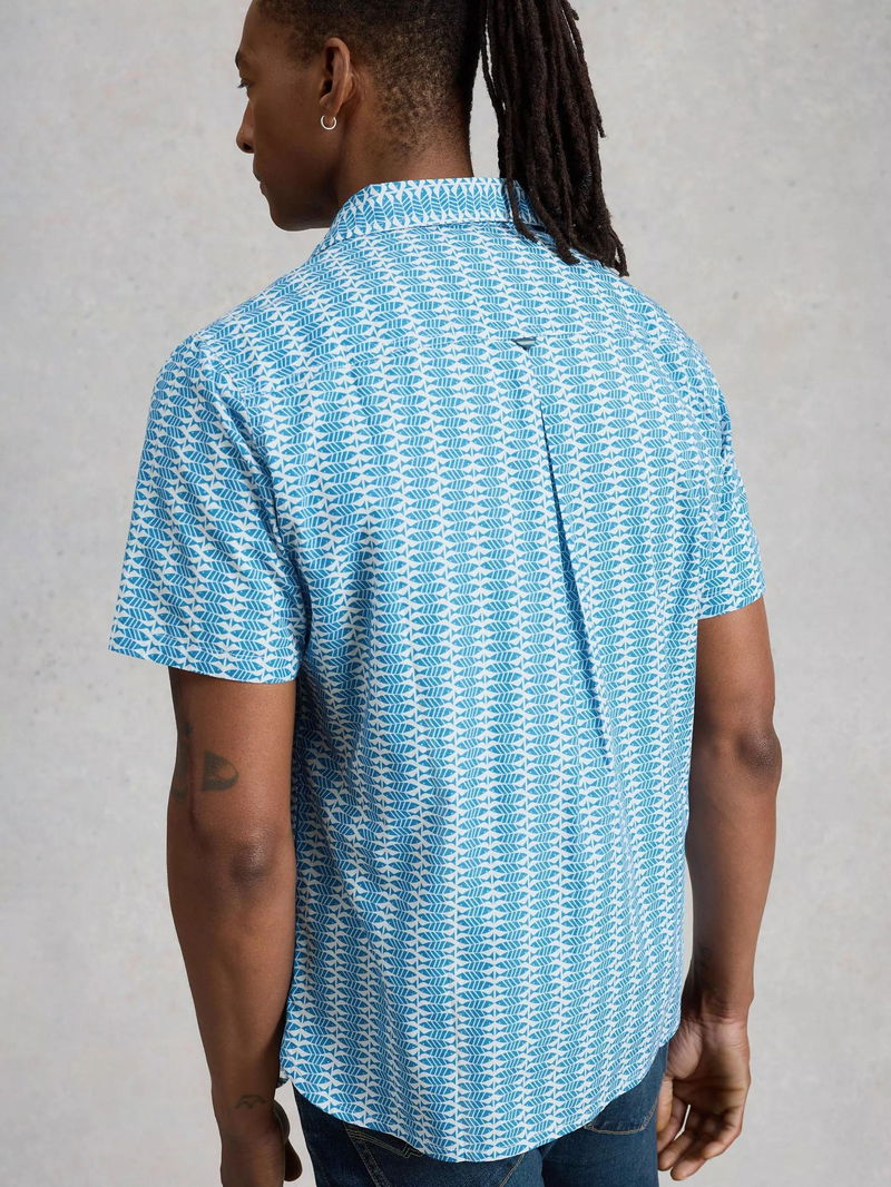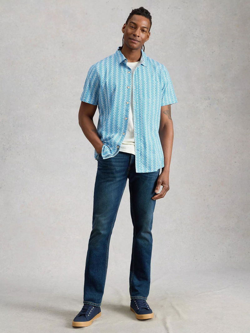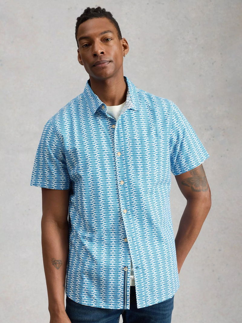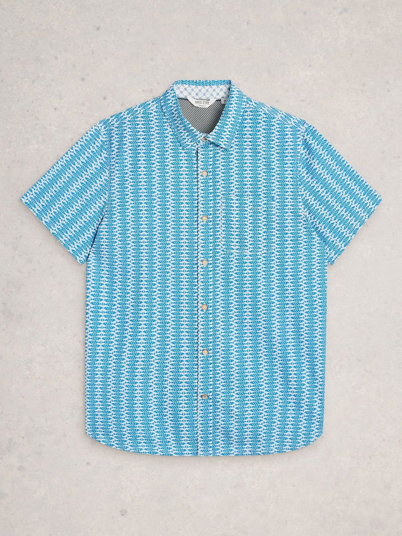 Finsbury Cotton Poplin Regular Fit Fish Print Shirt, White/Multi
