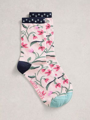 Floral Ankle Socks, Grey