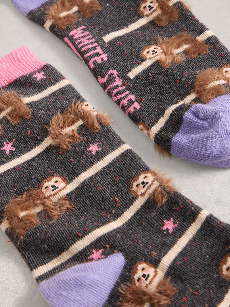 Fluffy Animal Stripe Ankle Socks, Dark Grey