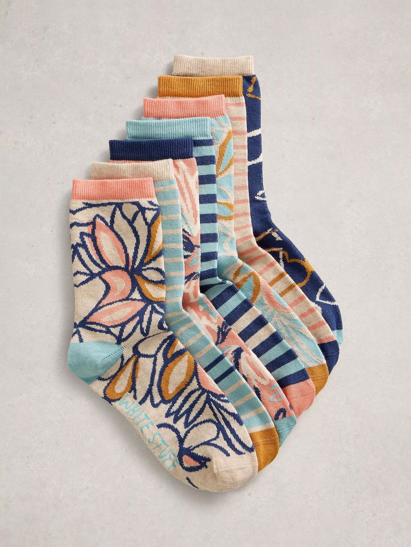 Geo Print Socks, Pack Of 7, Pink/Multi