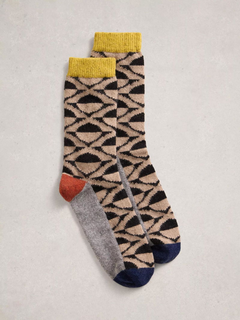 Geometric Wool Blend Ankle Socks, Natural/Multi
