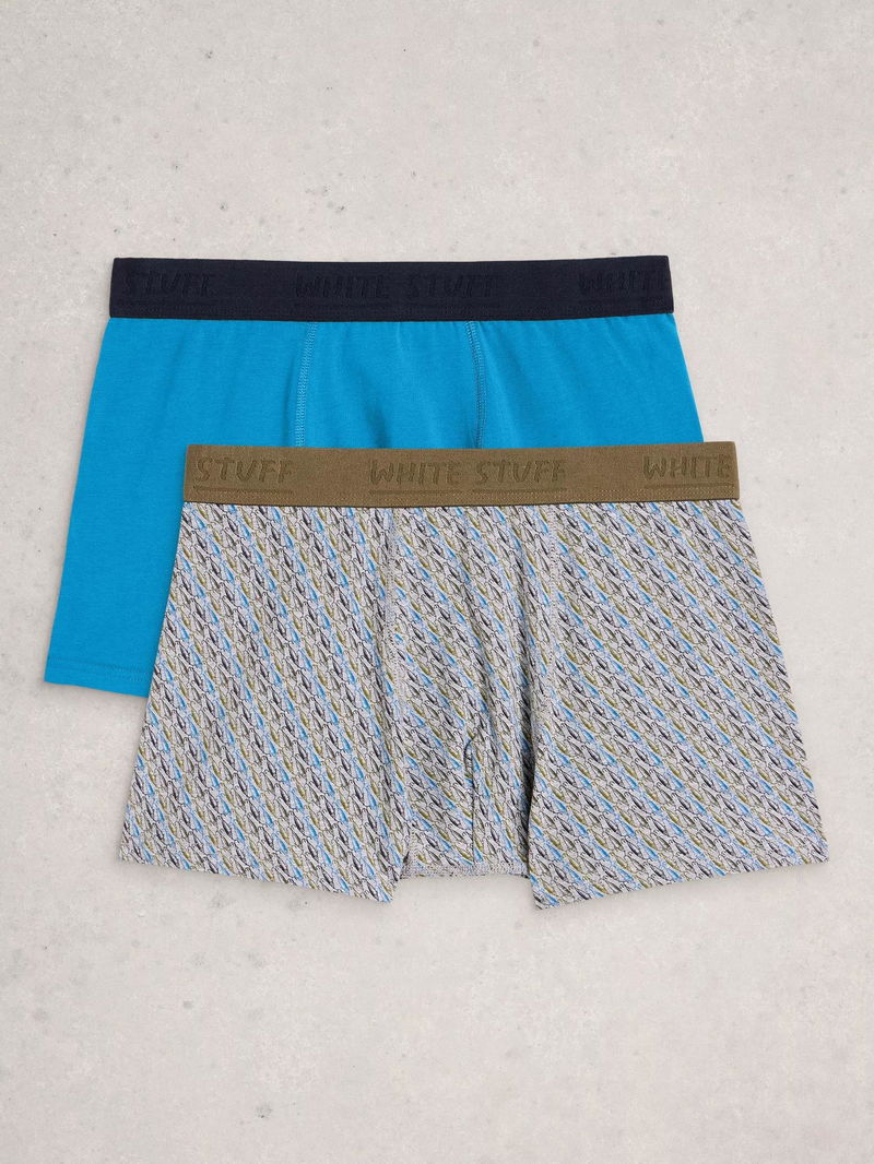 Hove Stretch Cotton Pattern & Plain Boxers, Pack Of 2, Bright Blue