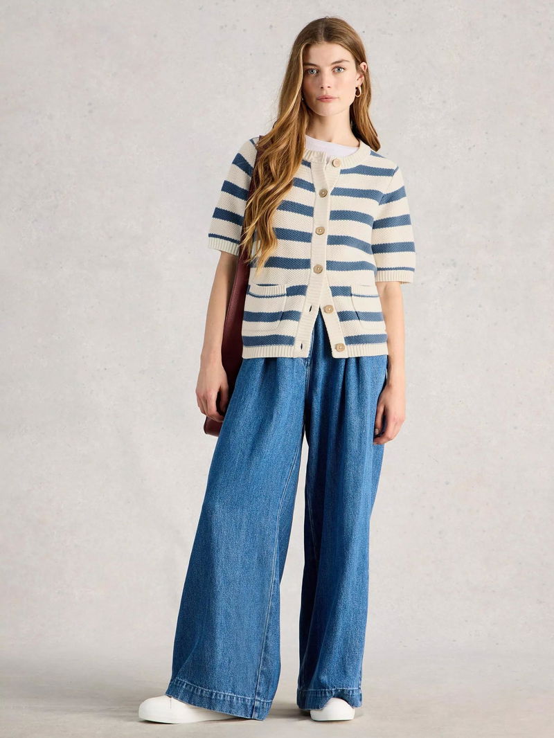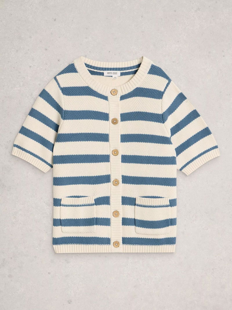 Isabella Organic Cotton Striped Cardigan, Blue/White