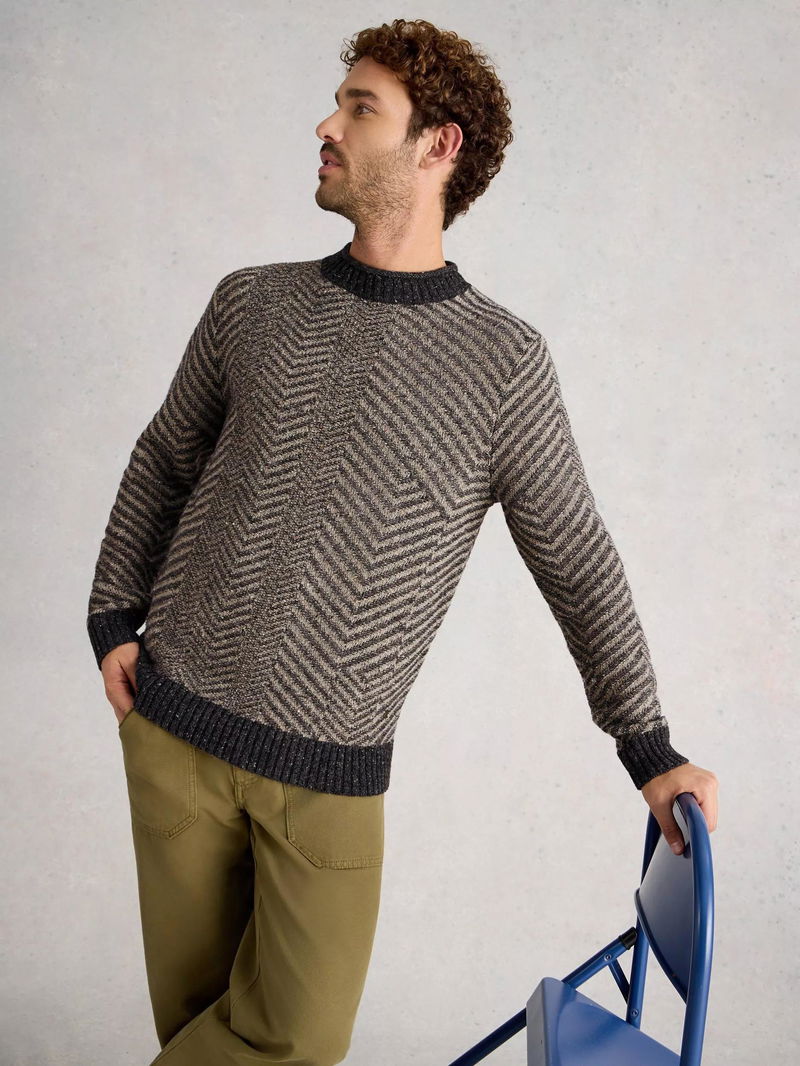 Jarrow Wool Blend Herringbone Crew Neck Jumper