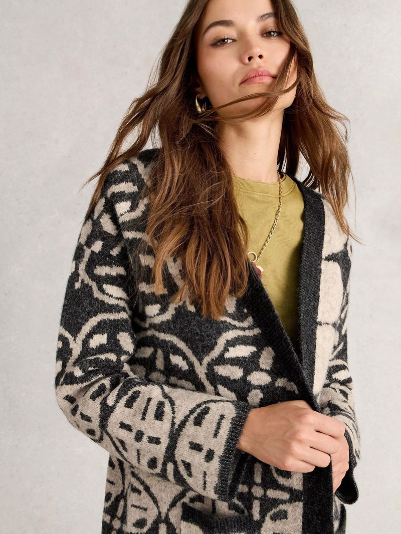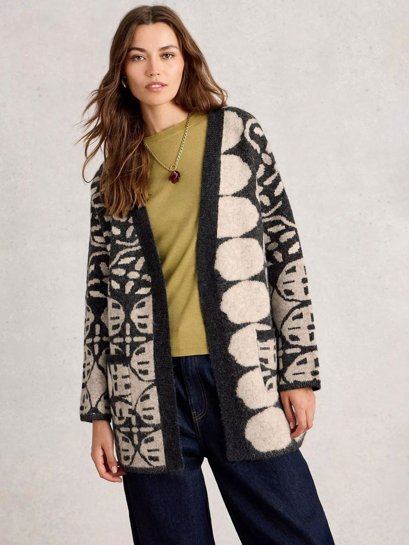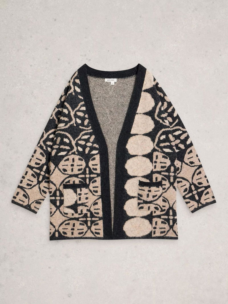 Jewel Geometric Open Neck Cardigan, Natural/Multi