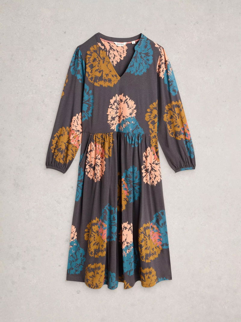 Leah Floral Jersey Dress, Black/Multi