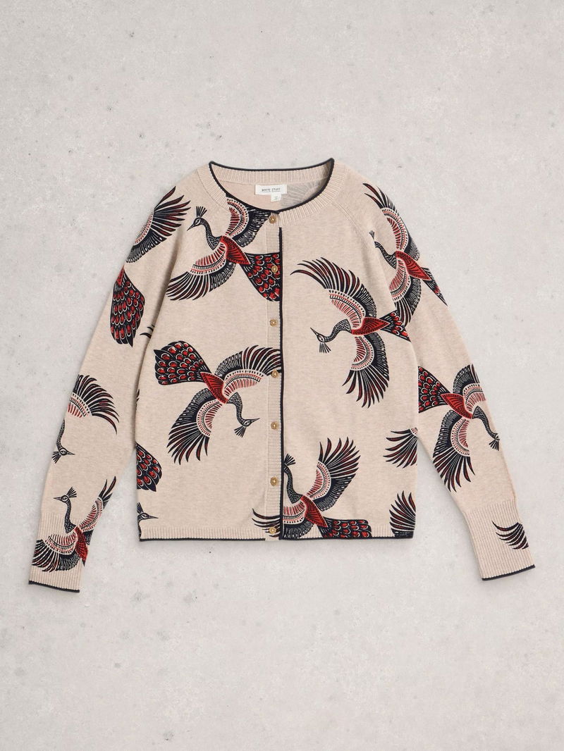 Lulu Organic Cotton Bird Graphic Long Sleeve Crew Neck Cardigan