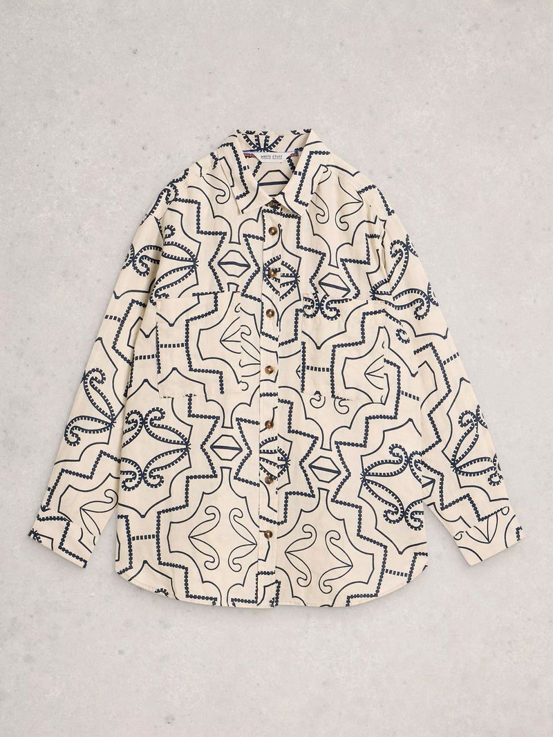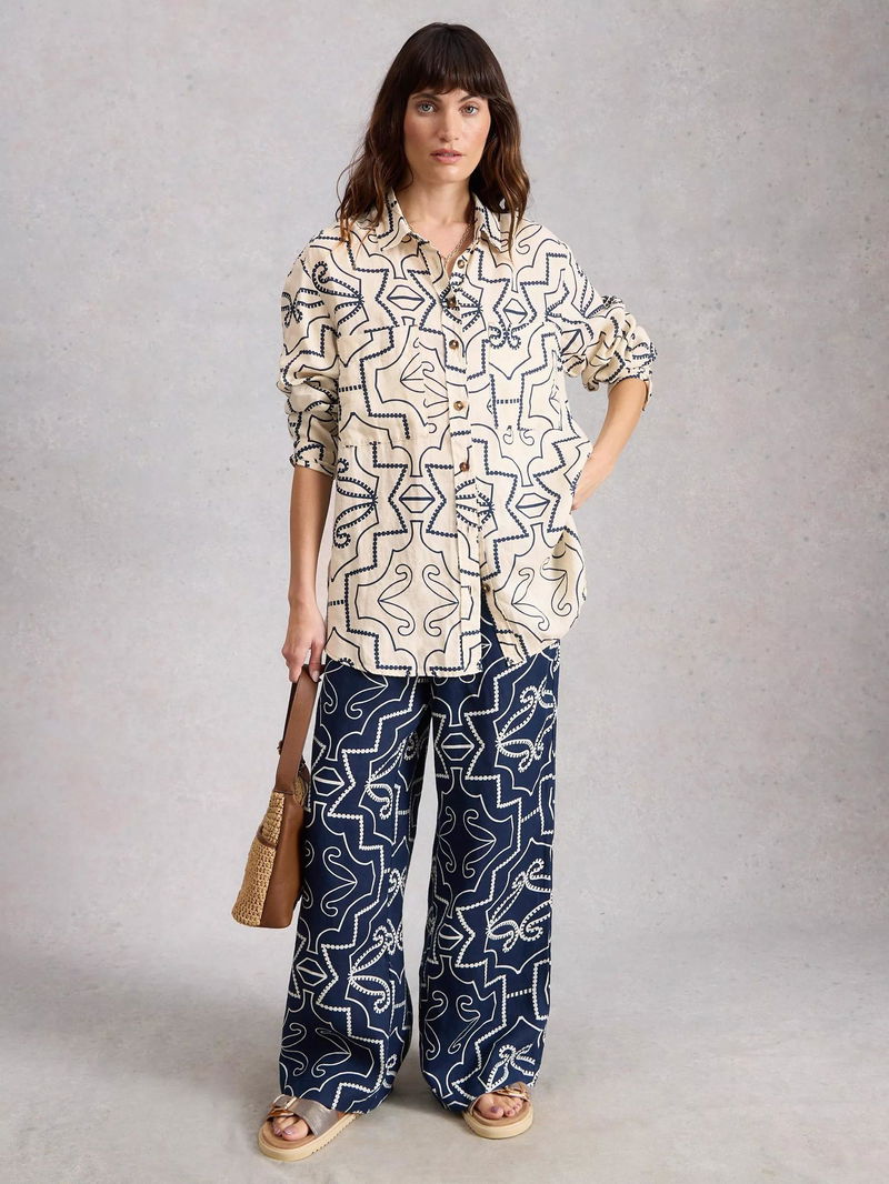 Lydia Geometric Pure Linen Shirt, Ivory/Multi