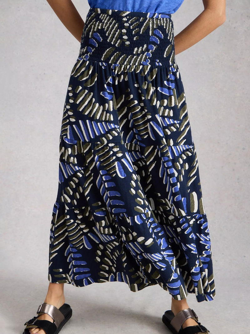 Marissa Leaves Maxi Skirt, Navy/Multi
