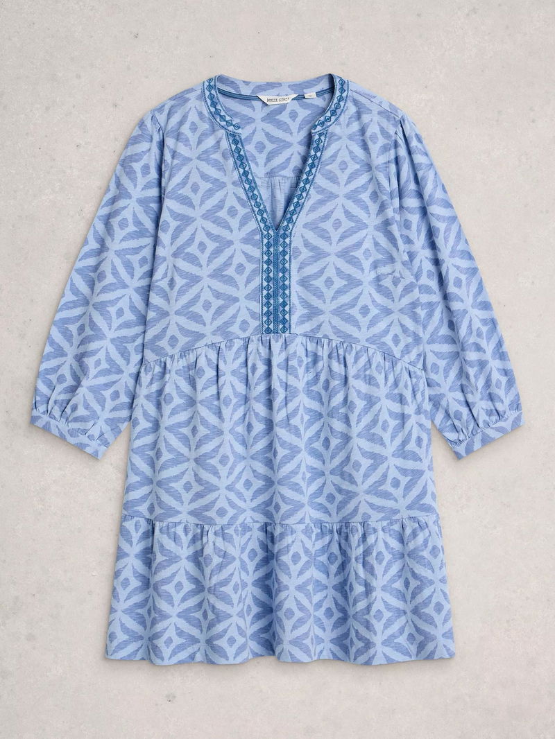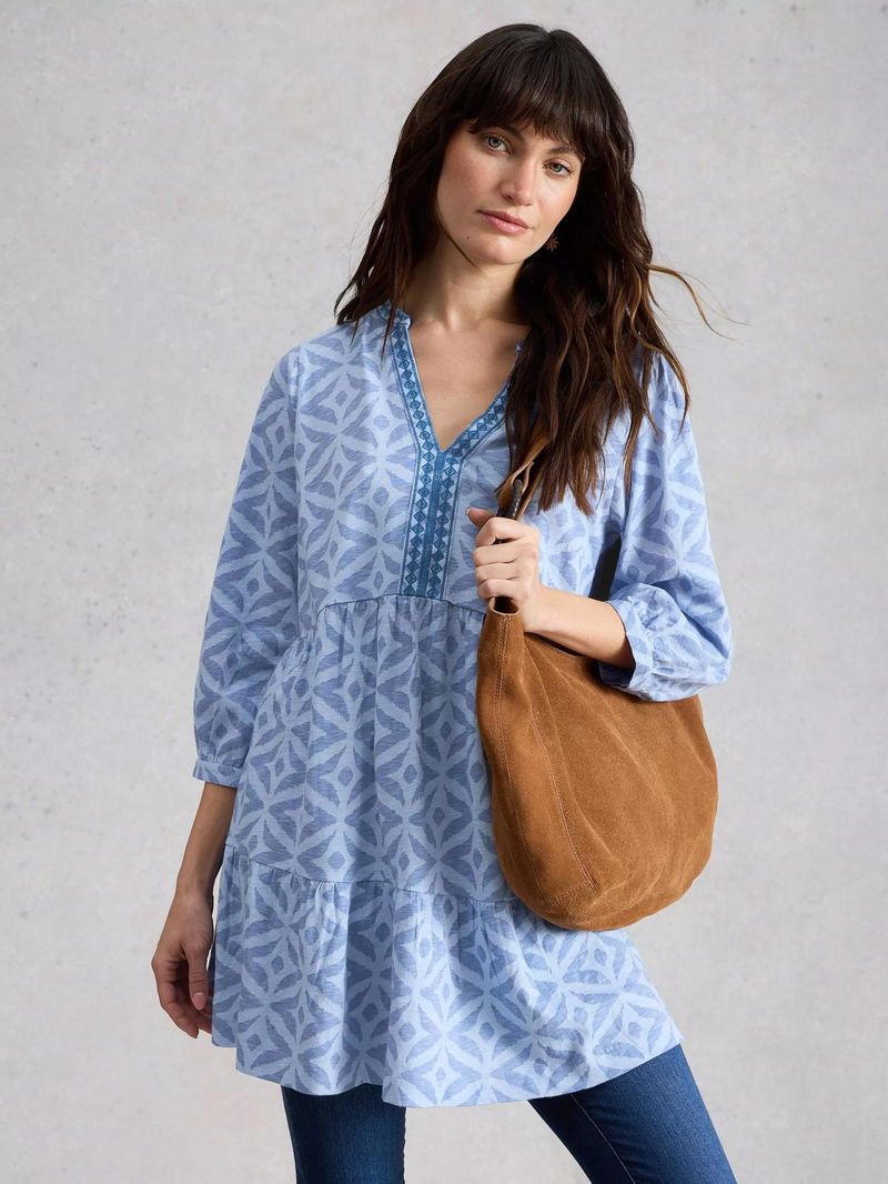 Marta Geometric Tunic Top, Pale Blue