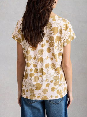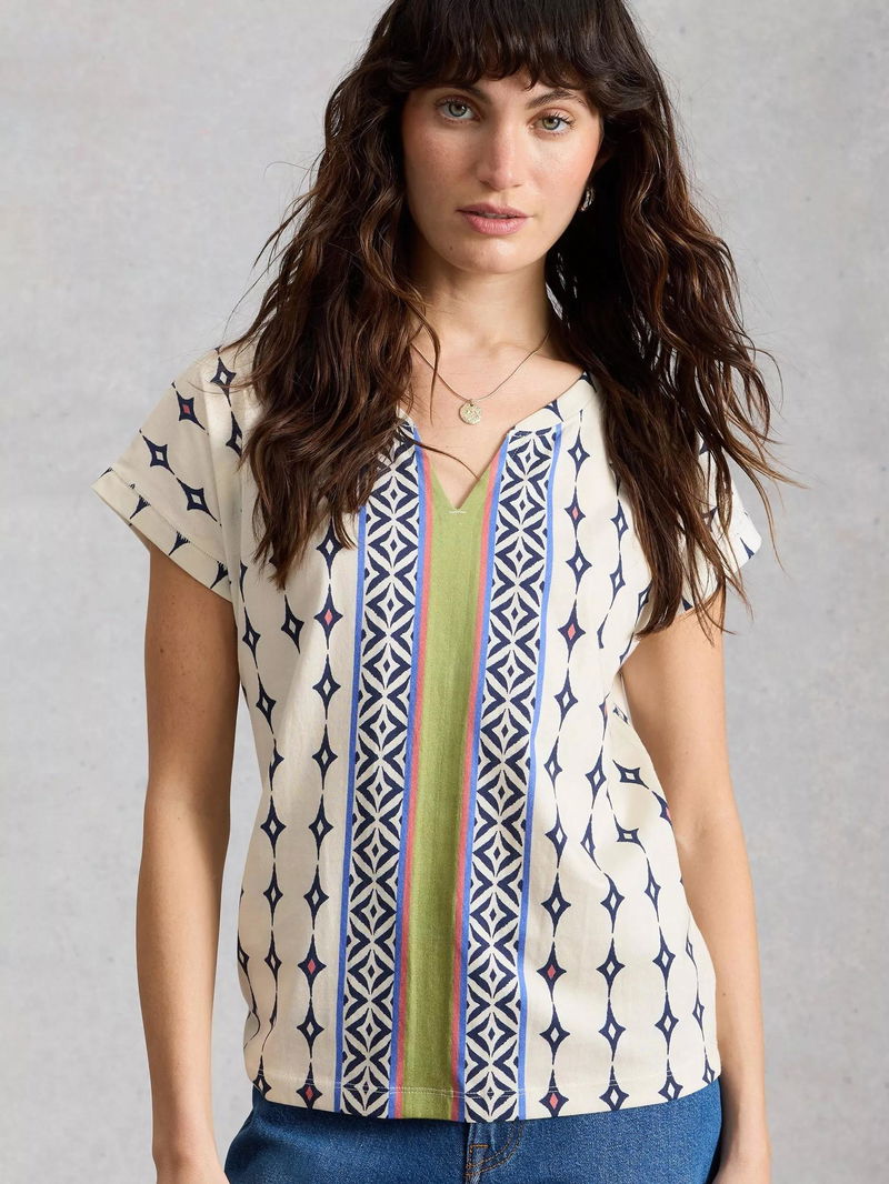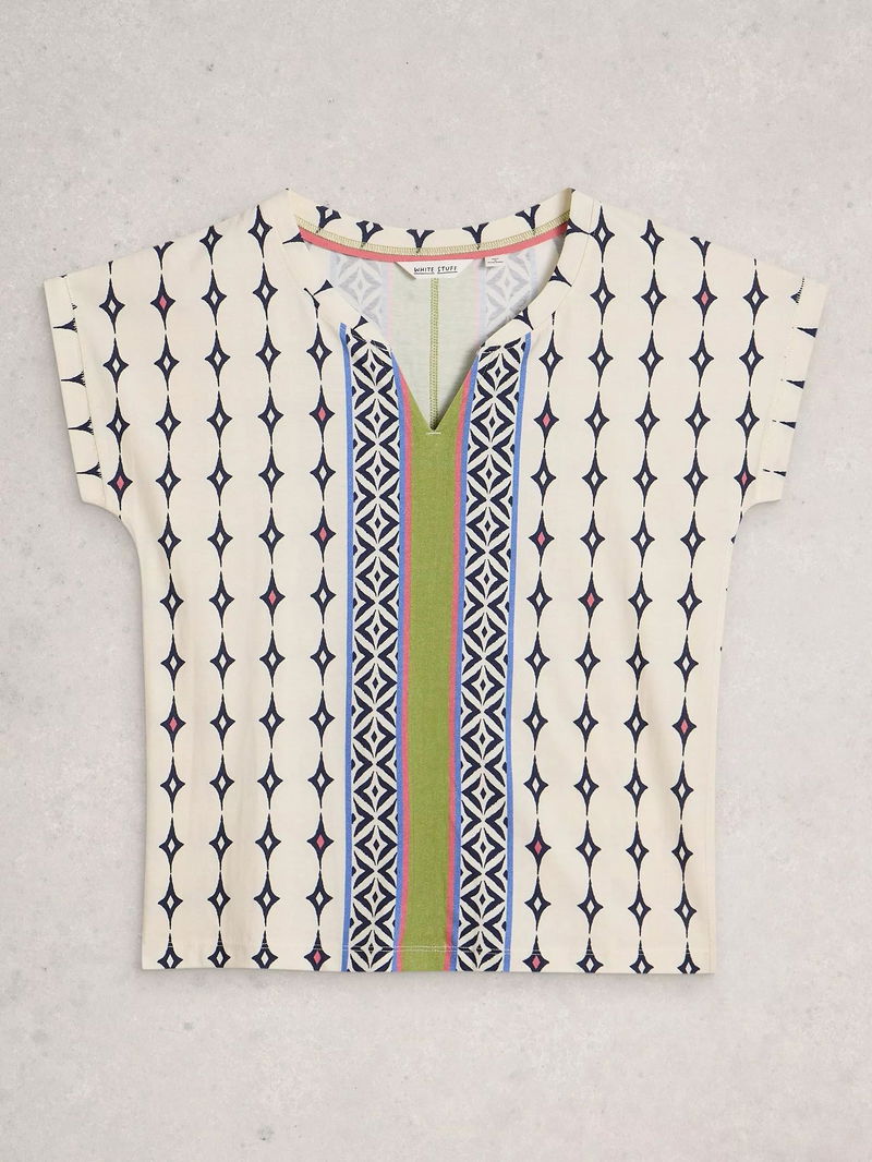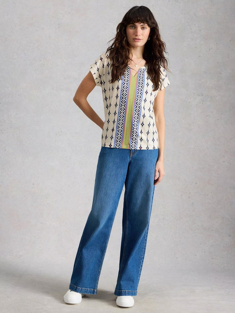 Nelly Notch Neck Abstract T-Shirt, White