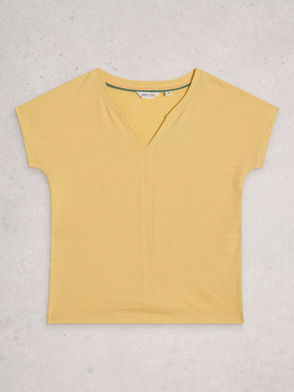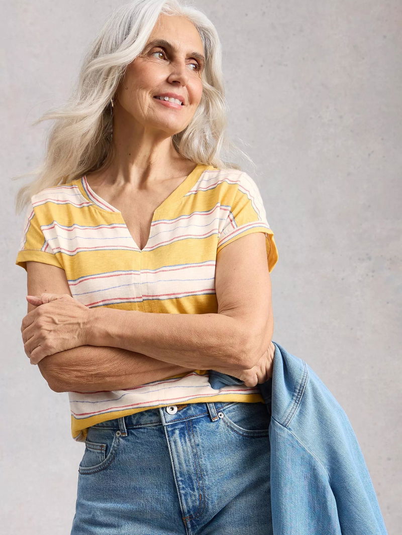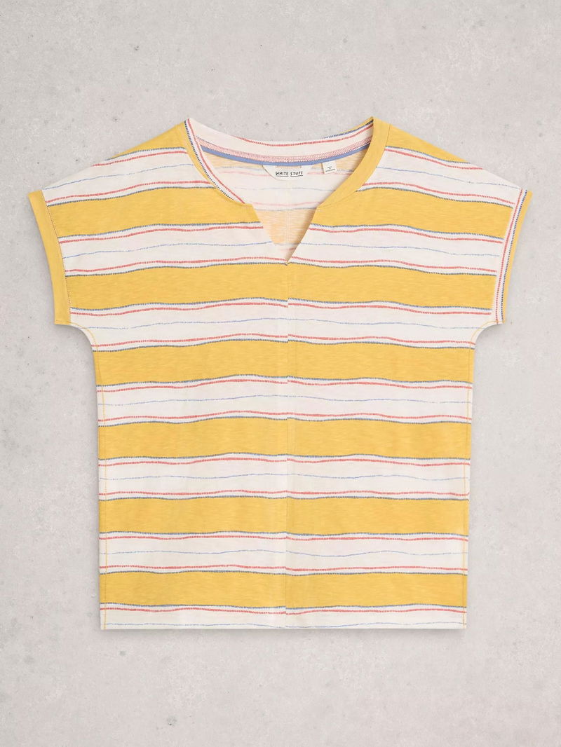 Nelly Striped Notch Neck T-Shirt, Yellow/White