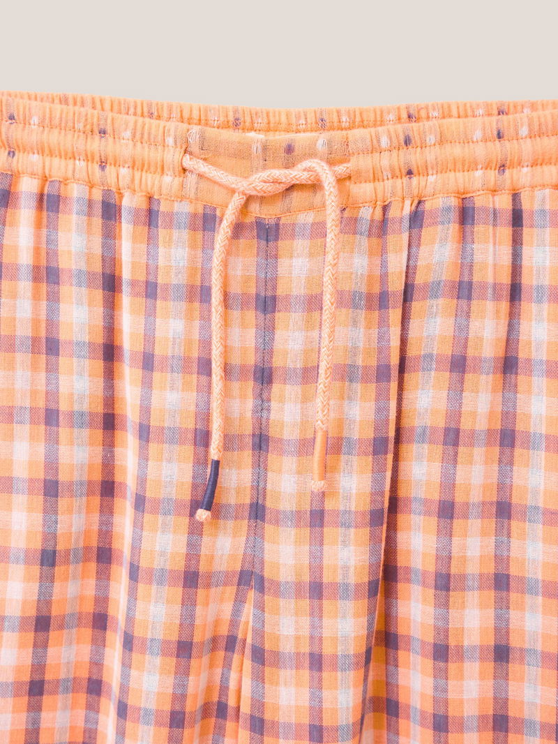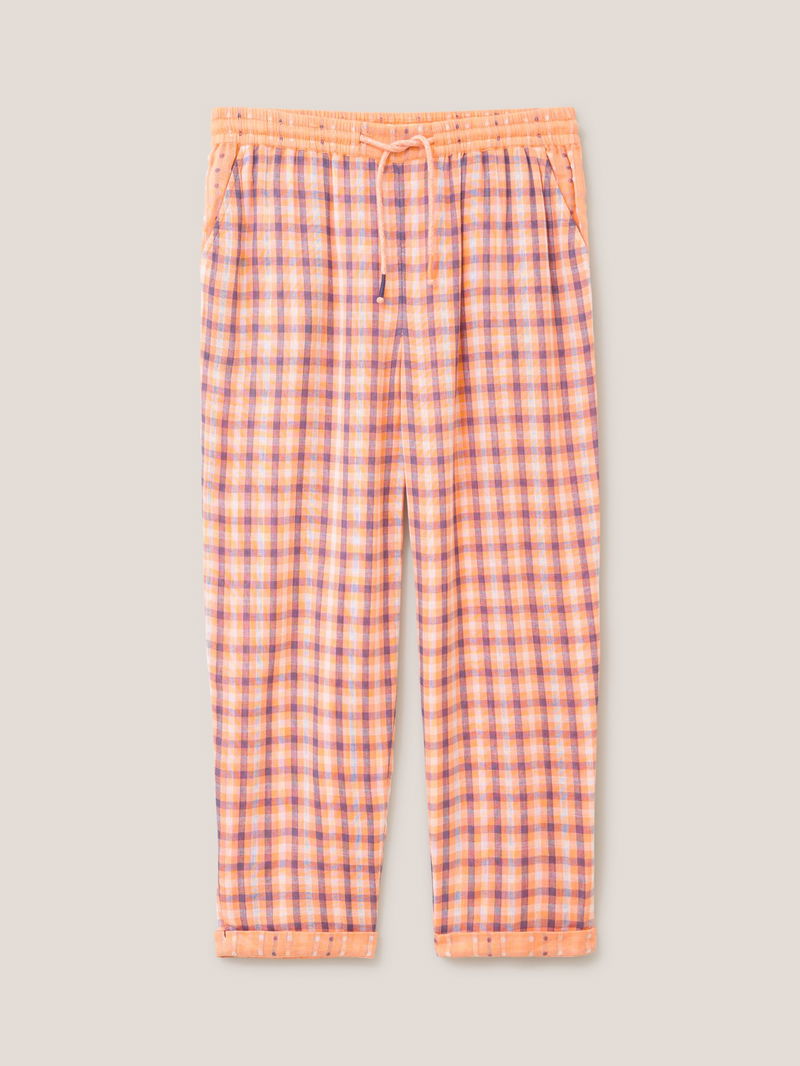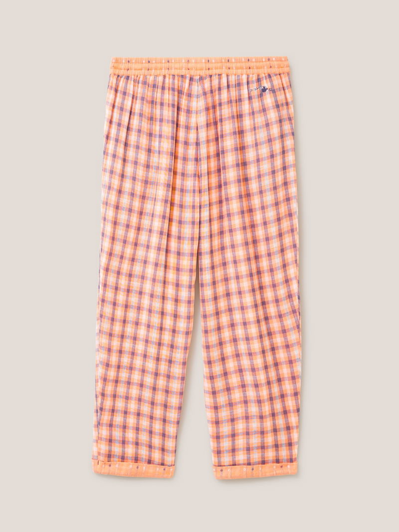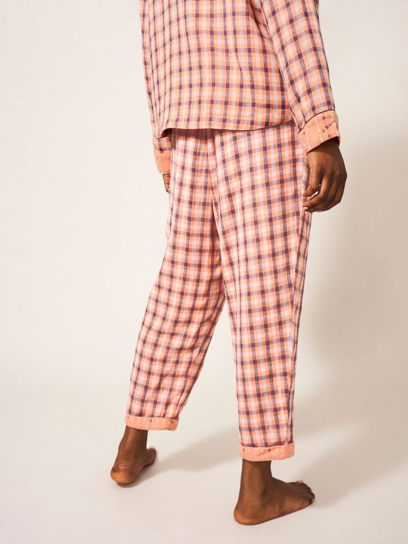 In a double cloth fabrication with check on the outer and spot on reverse, these fun PJ bottoms come with a comfy elasticated waistband with drawstring and handy pockets on either side.