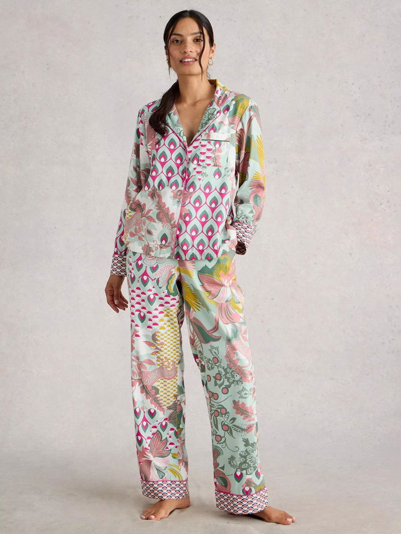 Nina Abstract Floral Pyjama Bottoms, Green/Multi