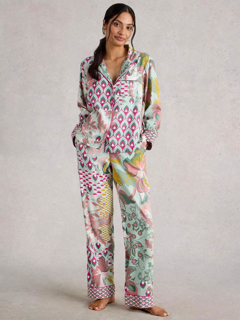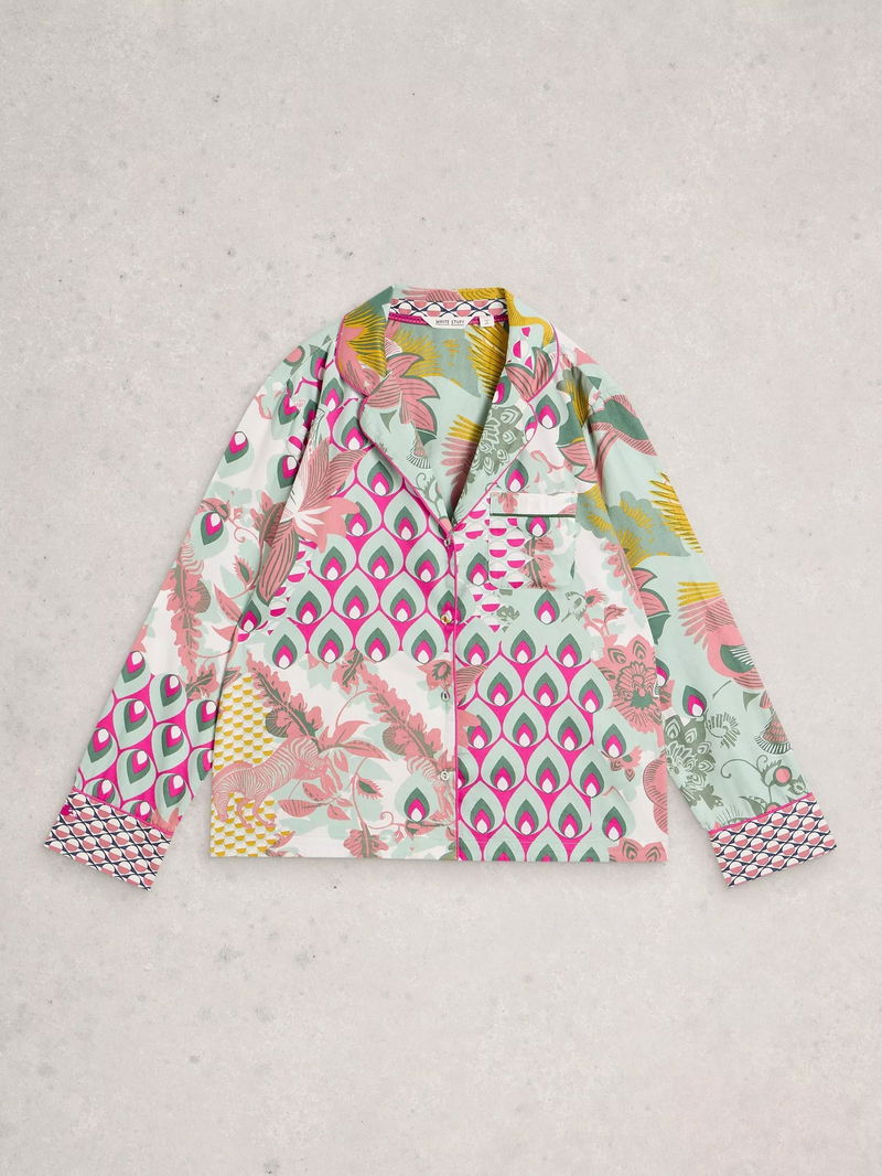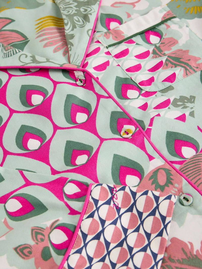Nina Mixed Print Pyjama Shirt, Green/Multi