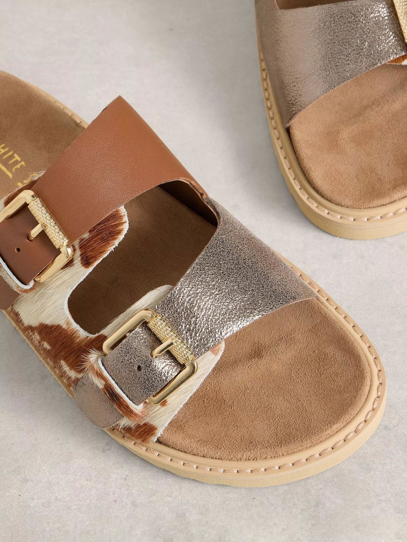 Patty Leather Two Tone Sandals, Tan