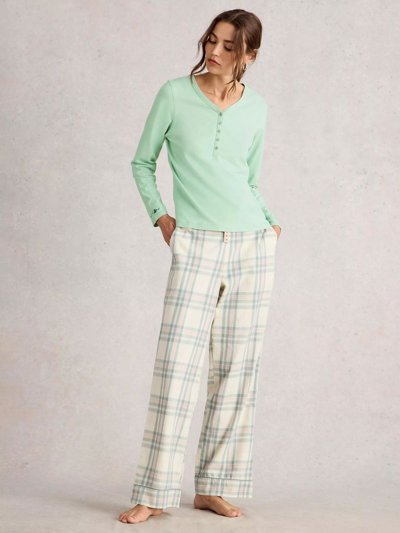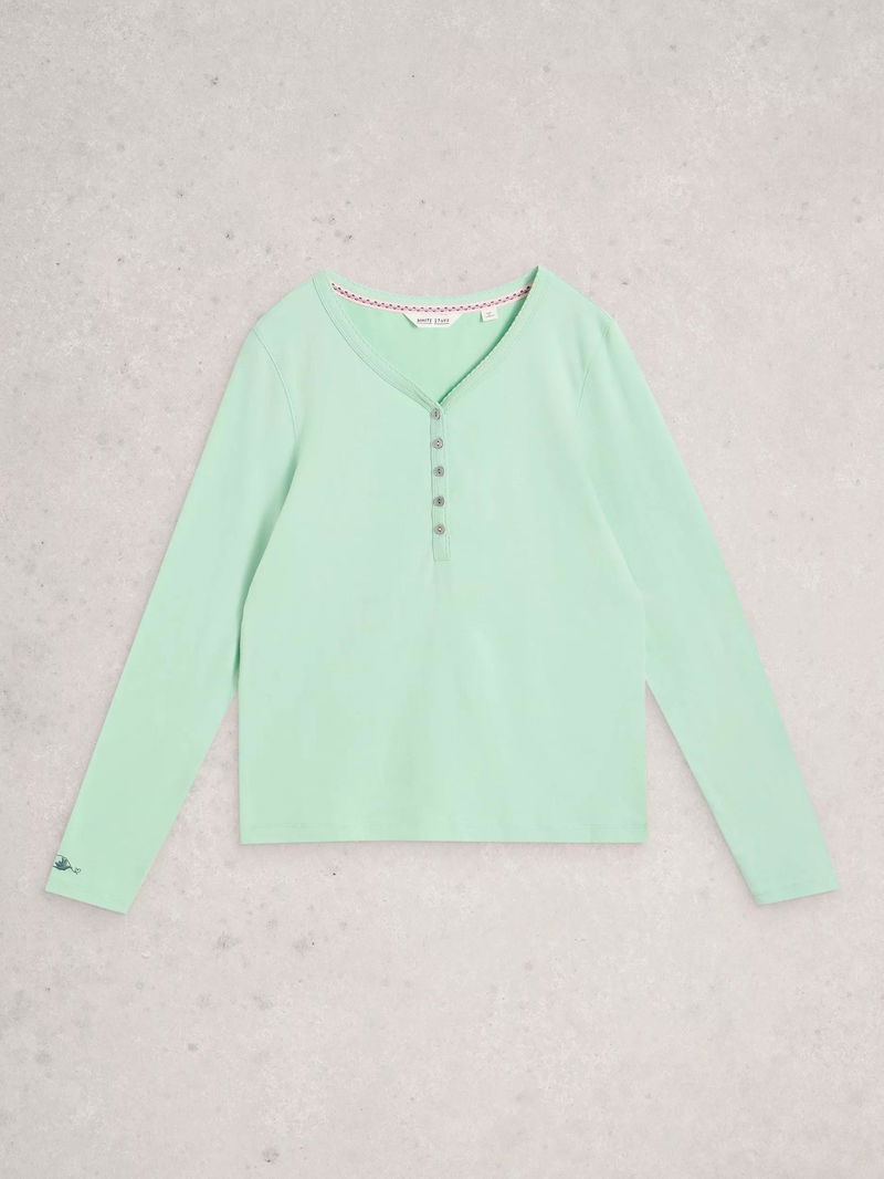 Penny Cotton Blend Long Sleeve Button Neck Pyjama Top