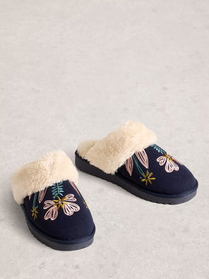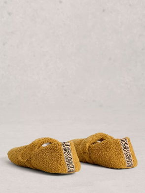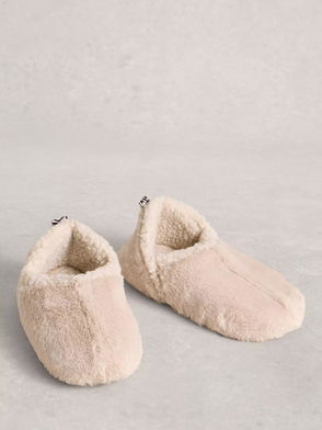 From White Stuff these fun slip-on knit ballerina slippers are completed with fluffy pom pom decoration on the toe.