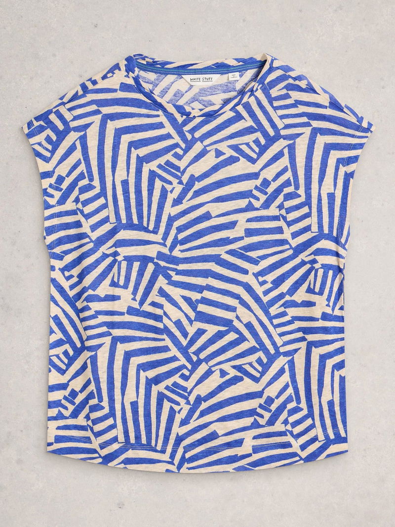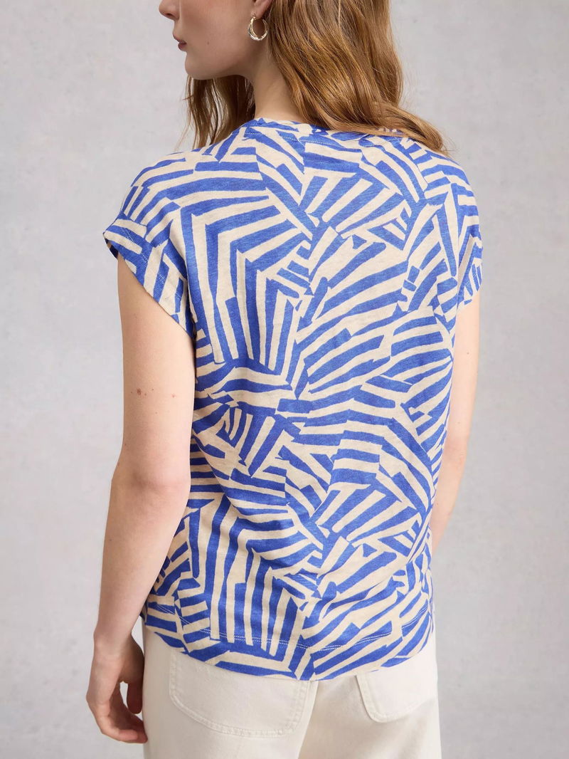 Rowan Abstract Pure Linen T-Shirt, Blue/Multi