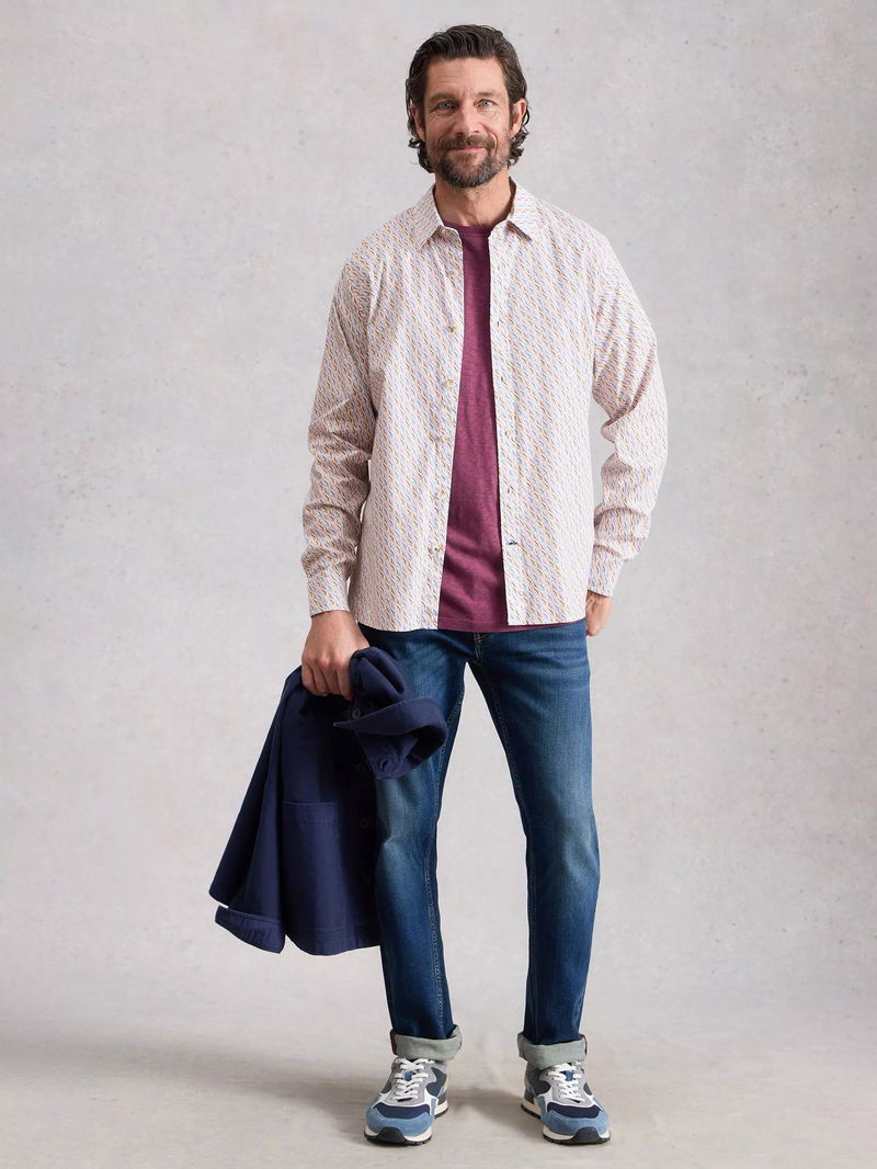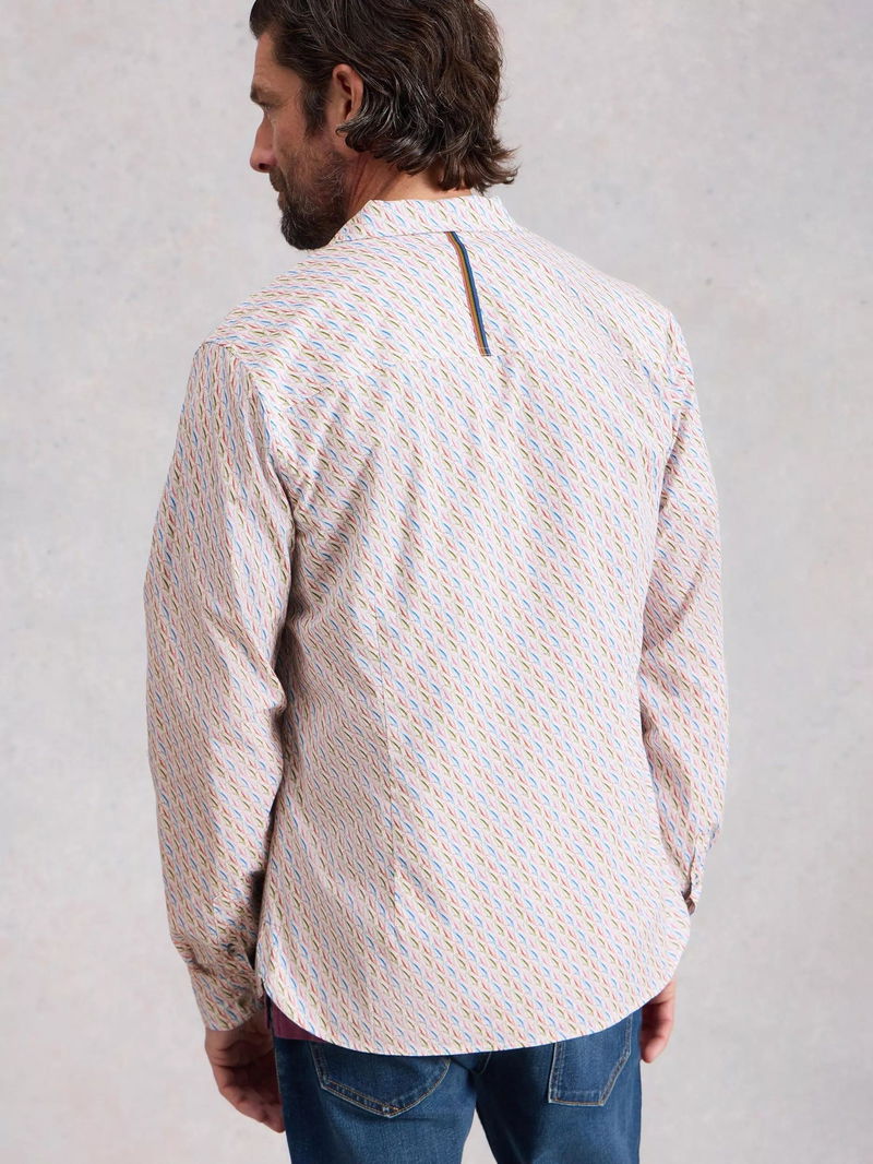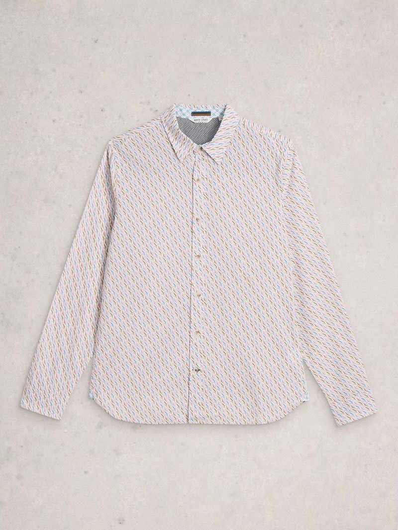 Salcombe Cotton Blend Regular Fit Abstract Shirt, White/Multi