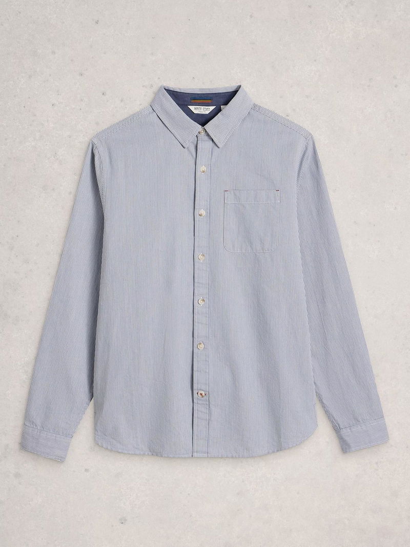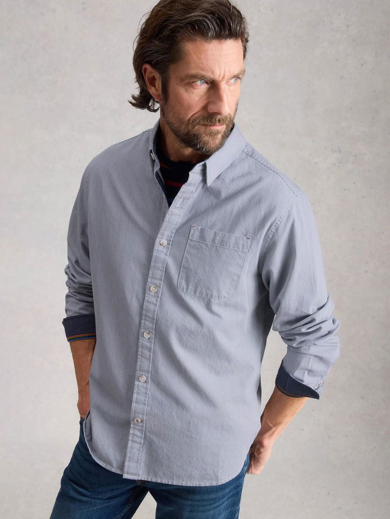Sefton Cotton Regular Fit Stripe Shirt, Light Blue