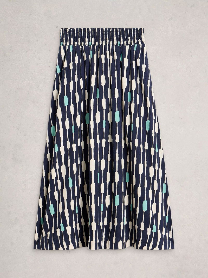 Shelly Linen Blend Midi Skirt, Blue/Multi