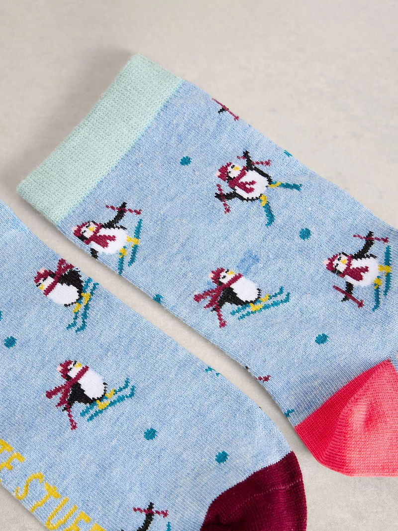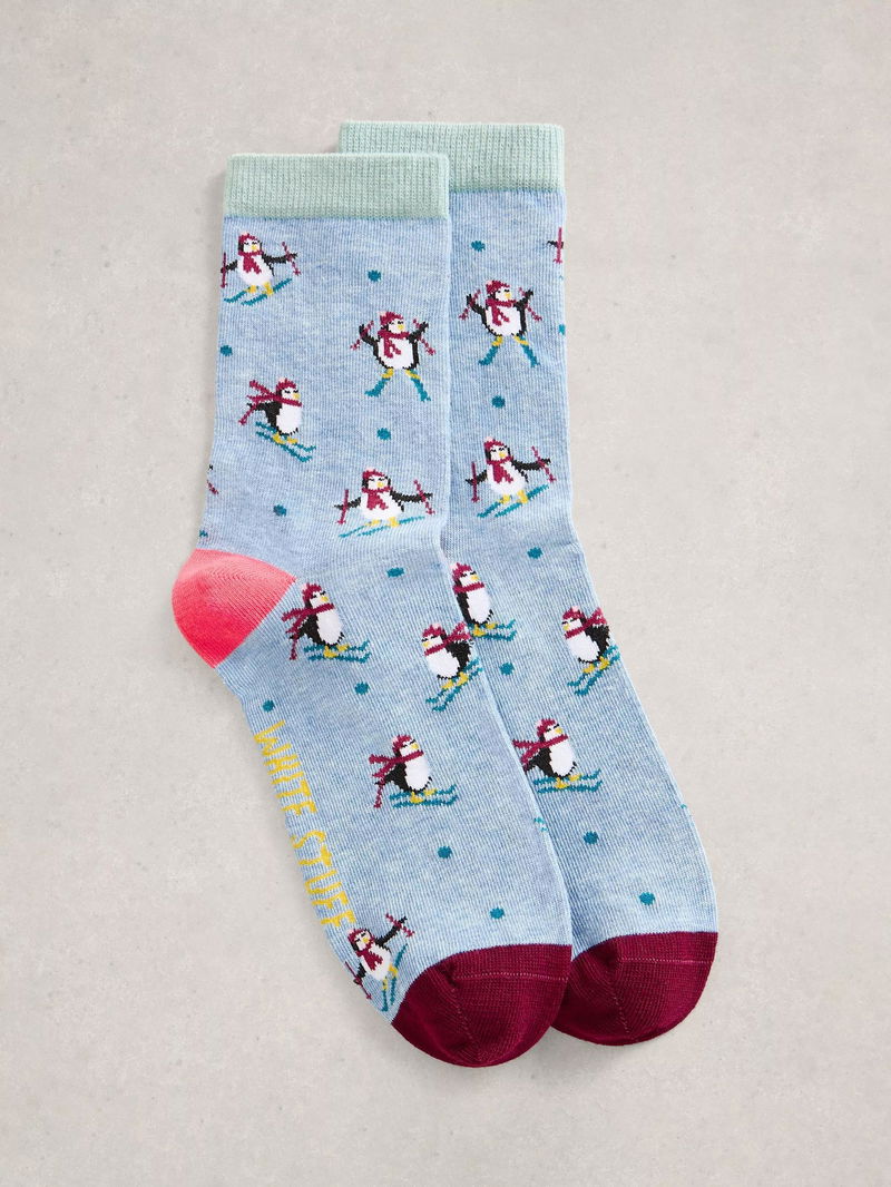 Ski Penguin Ankle Socks Cracker, Blue/Multi