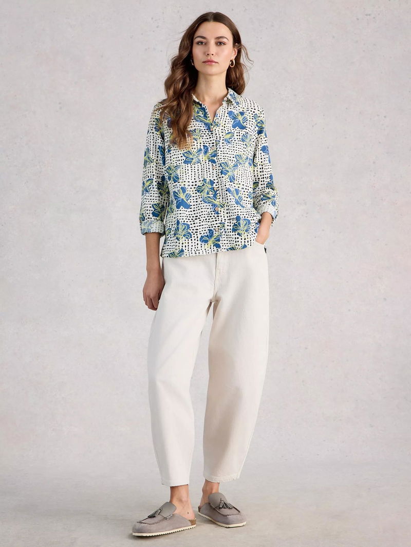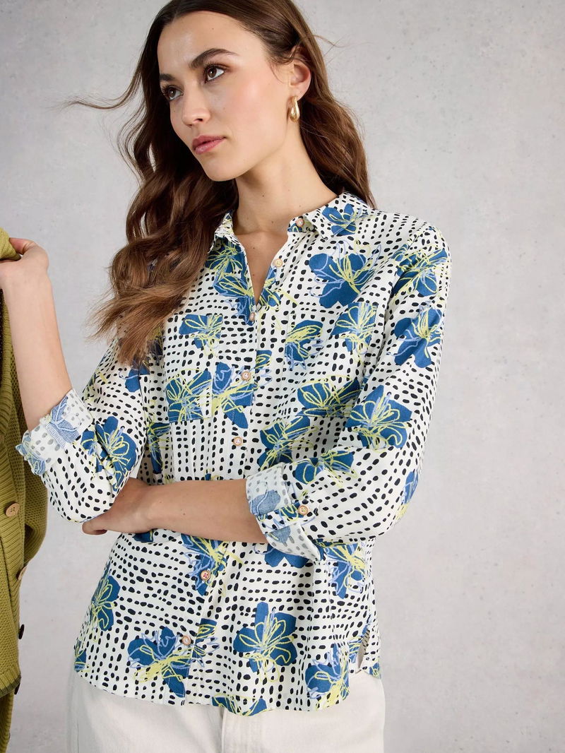 An everyday shirt from White Stuff, crafted from organic cotton. With a collar, long sleeves, and pretty abstract floral, it's an effortless style for daily dressing.