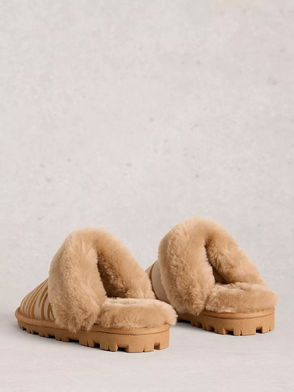 Slipping on with ease as you move to loungewear mode, these suede slippers from White Stuff are designed with a plush shearling lining and memory foam insoles.