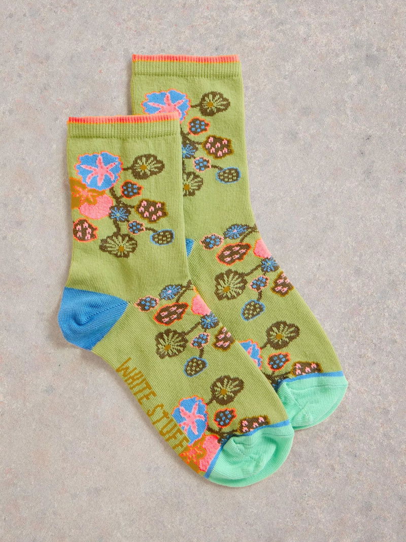 Floral design cotton ankle socks.