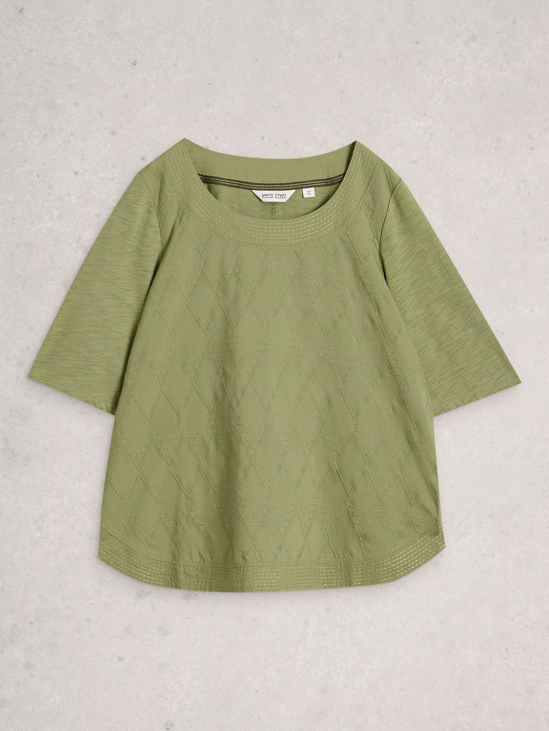 Weaver Broderie Detail Top, Khaki