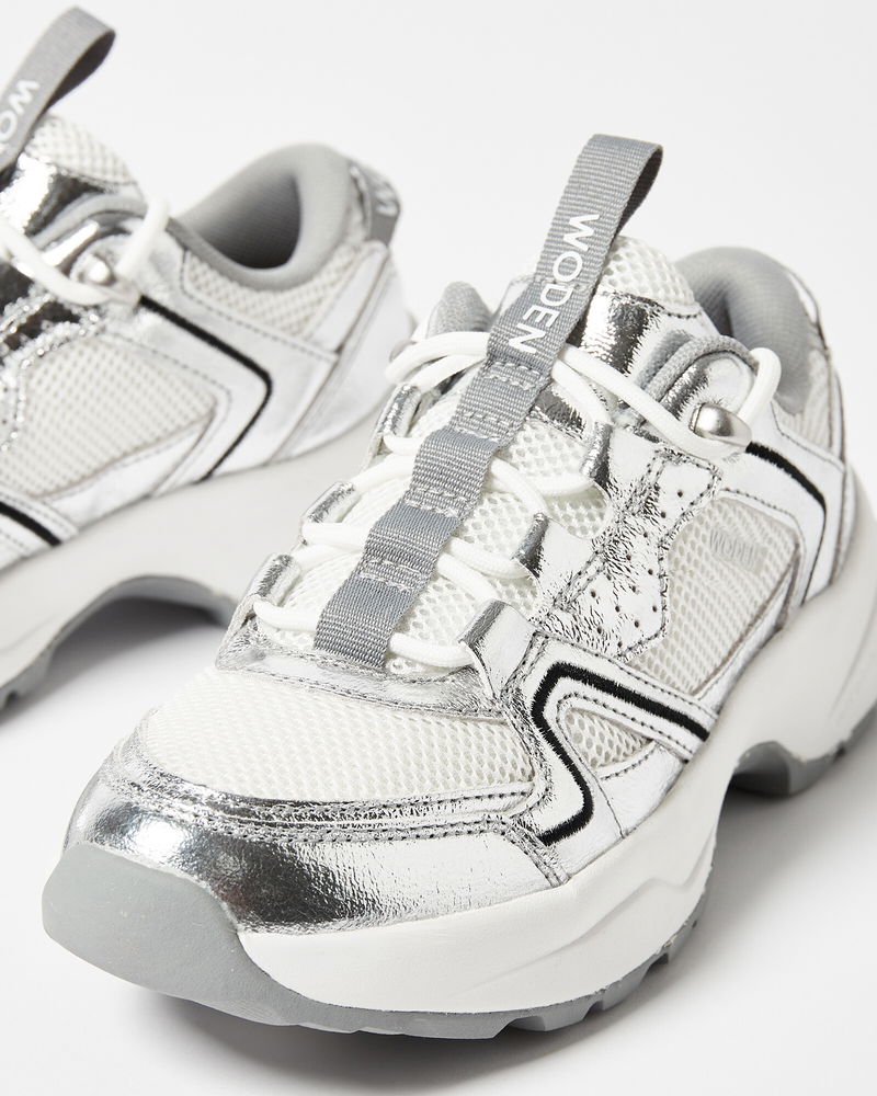 With a metallic accents and Woden branding on the tongue, side and heel, these leather trainers have a thick, chunky sole.
