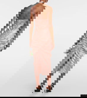 Count on Alessandra Rich for spotlight-stealing looks with feminine flair. Crafted in Italy from wool-blend crêpe, this midi dress is finished with a notched lapel, puffed sleeves, and a front bow detail.