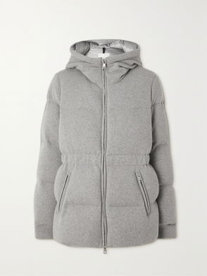 In collaboration with Naj Oleari, the Plumel down jacket from the 3 Moncler Grenoble collection is designed to a padded bomber silhouette with an extractable hood. This piece is made from chevron-quilted nylon with a glossy finish and a cartoon-illustrated print.