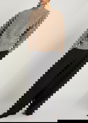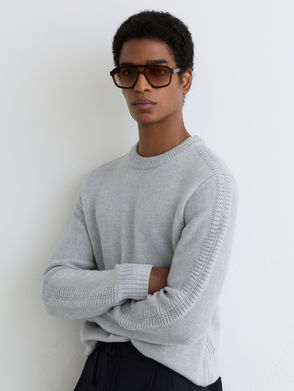 Wool-Blend Rib-Detail Crew-Neck Jumper In Soft Grey