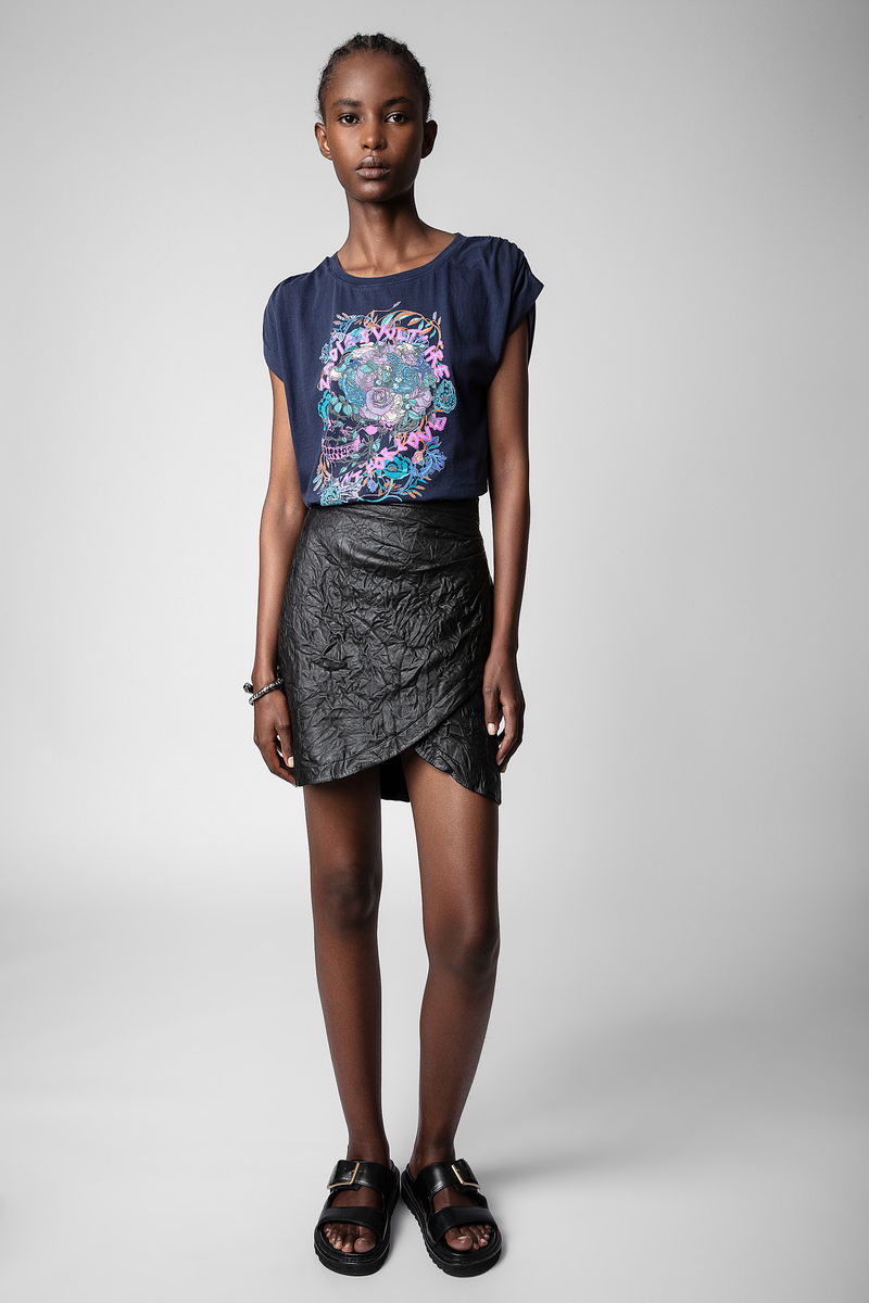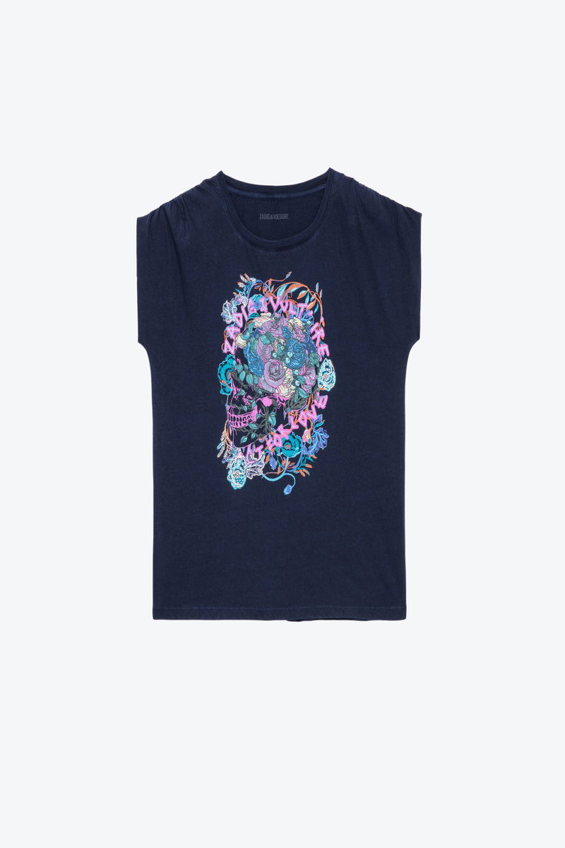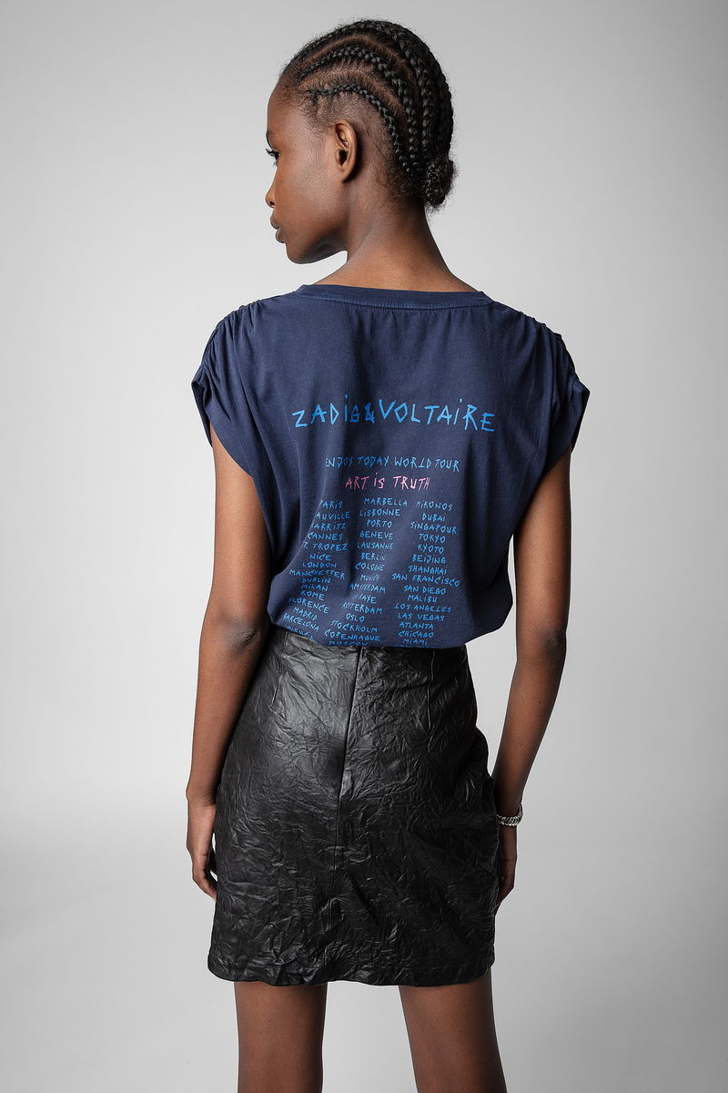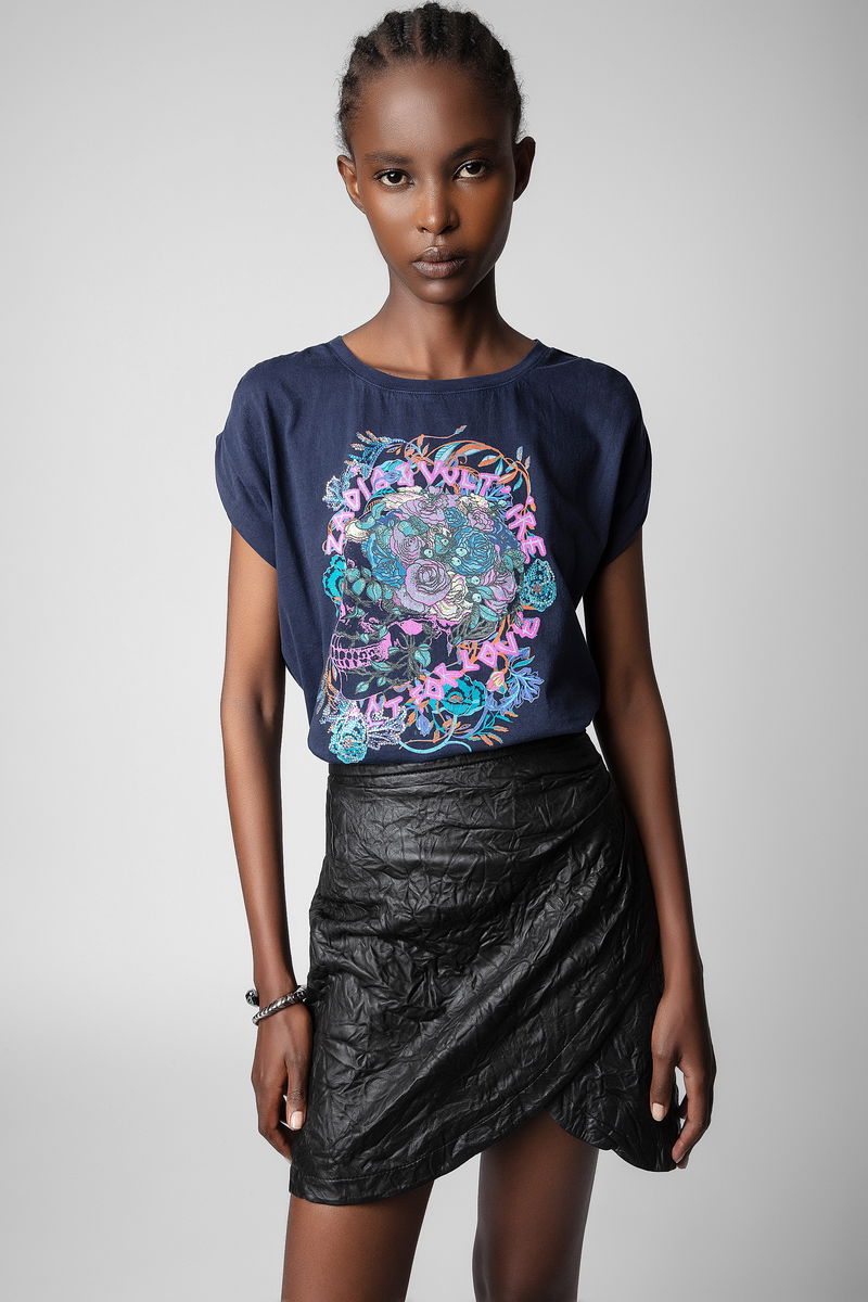 A colourful skull decorated with flowers and the mantra “Act For Love” appears on the front of this cotton T-shirt with a round neck and short sleeves. On the back, a “World Tour” print reveals the cities where you can find your Zadig&Voltaire stores.