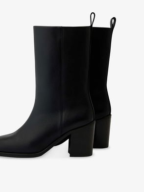 Women's black semi-patent smooth leather ankle boots - Leather lining - Side zip - Pointed toes and bevelled heels.Cut-outs on the upper and signature domed wings at the back.