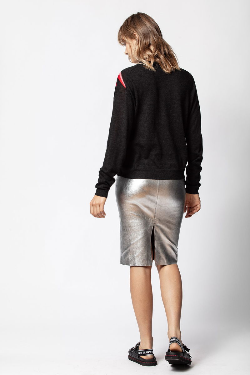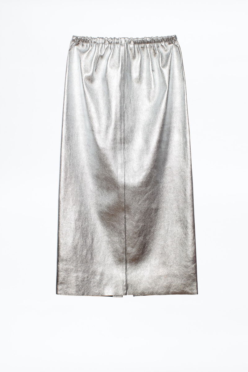Zadig&Voltaire mid-length fitted skirt, elasticated waist, slit in the back, 100% stretch lambskin leather.