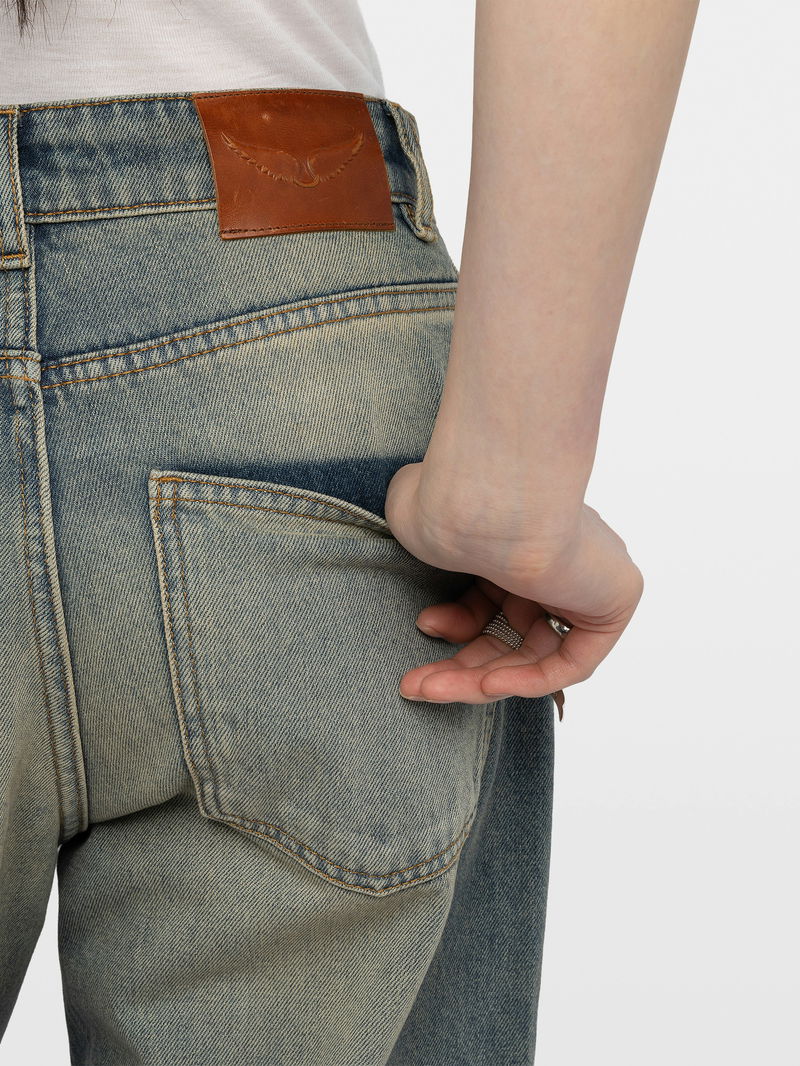 100% cotton jeans. Patch pockets and ticket pocket. Loose fit.