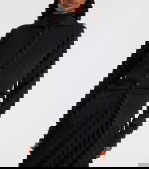 Neige light grey merino wool cardigan. Gold-tone jewel buttons with silver diamanté. V neckline. Long sleeves, pointelle ZV signature and ribbed trim.