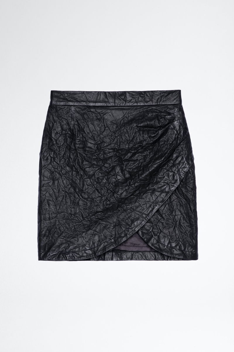 Zadig&Voltaire’s signature material: crumpled leather is a must-have on this short and stylish wraparound skirt.