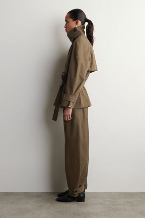 Trench coat in 100% cotton - Classic collar - Double-breasted button fastening - Long sleeves - Welt pockets - Removable belt.