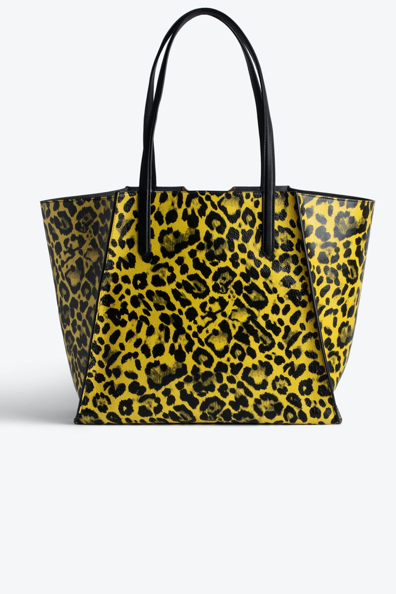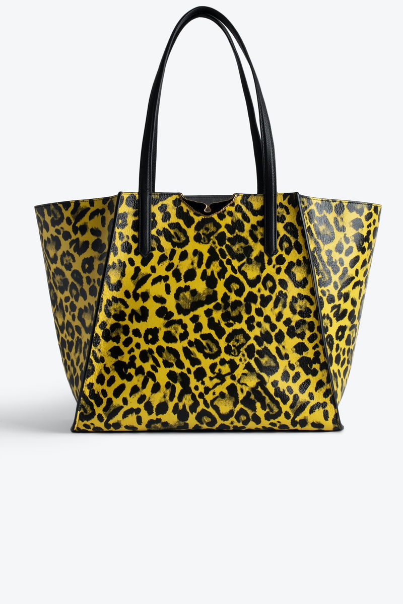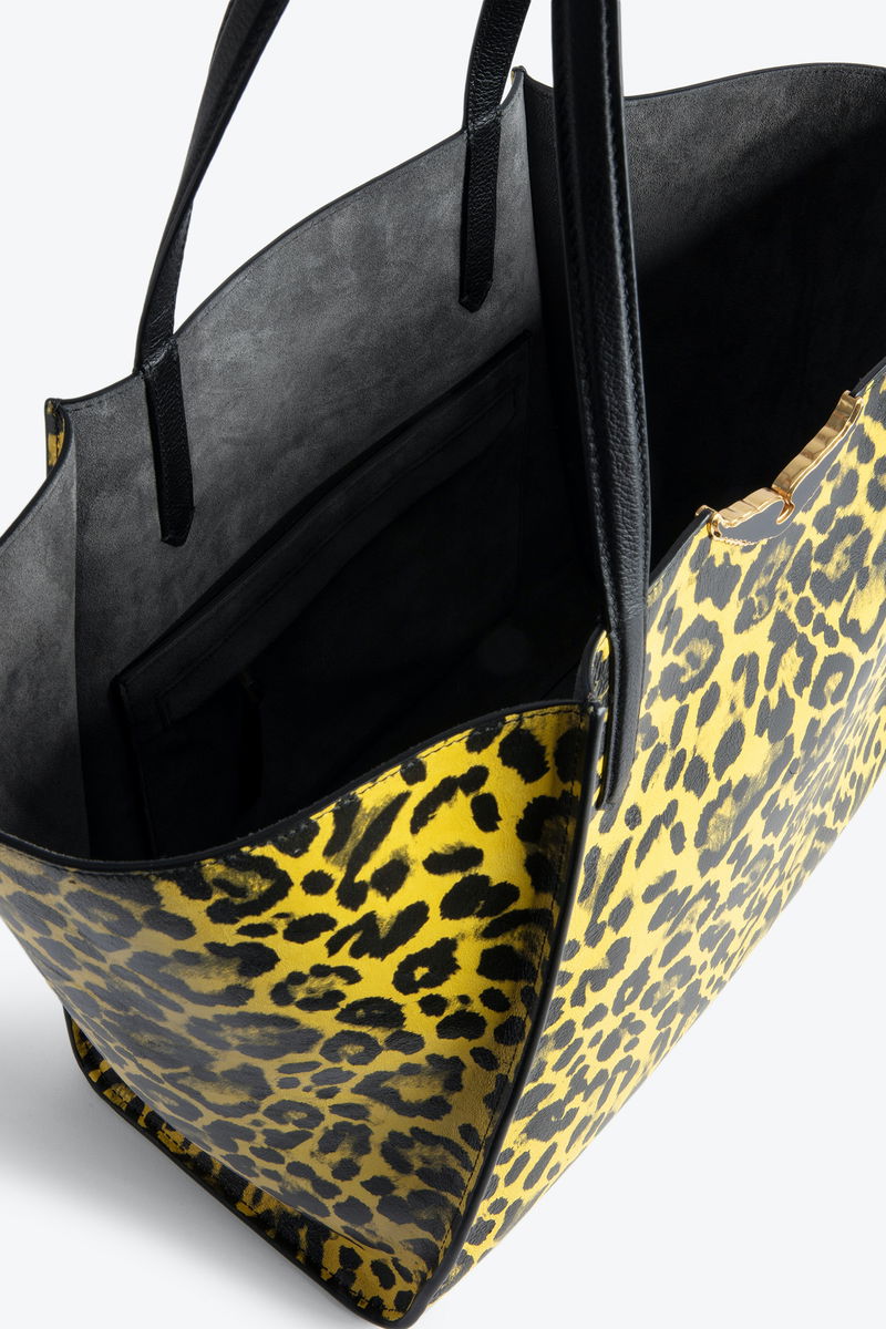 Women’s Le Borderline bag in Holiday yellow patent leather. Leopard print and grey suede lining. Black lacquered gold-tone metal wings. Leather handles. Inside pocket with zip fastening. Carry by hand or over the shoulder.