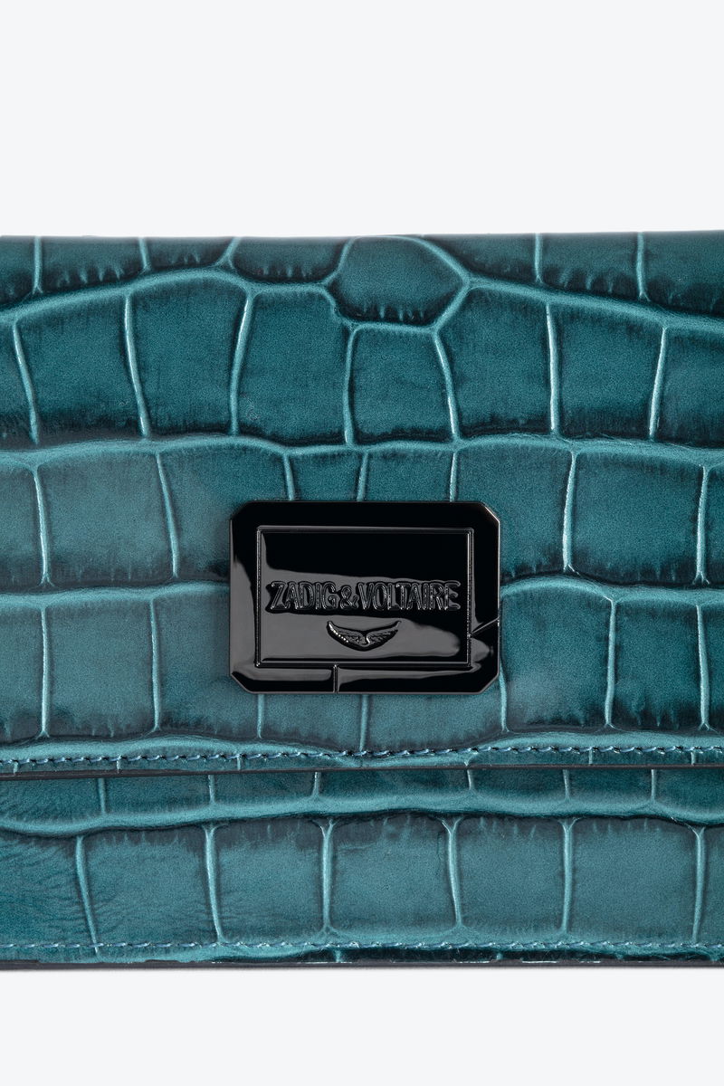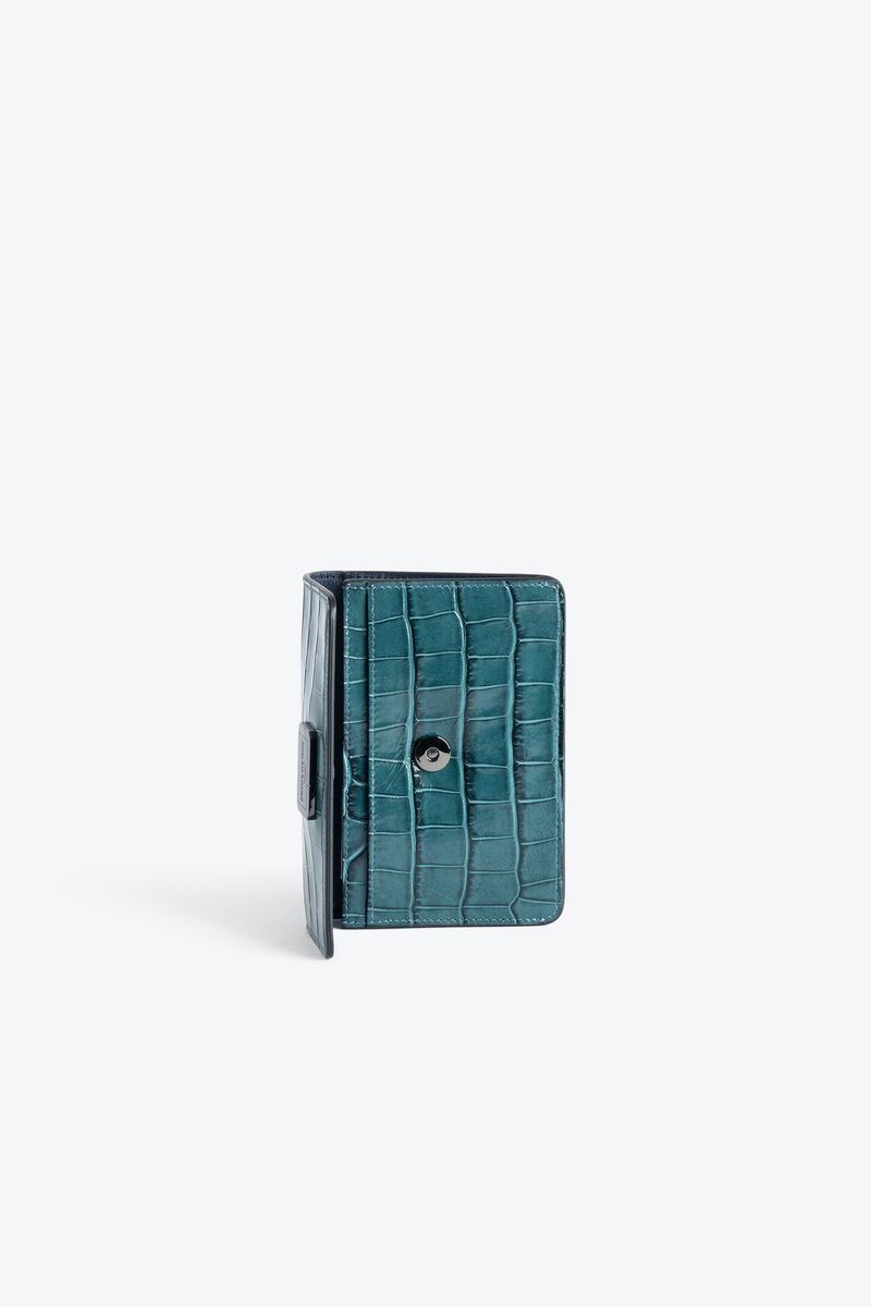 Women’s Le Cecilia wallet in Abyss green croc-embossed leather. Flap with Zadig&Voltaire engraved metal magnetic button clasp.