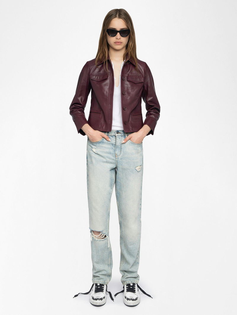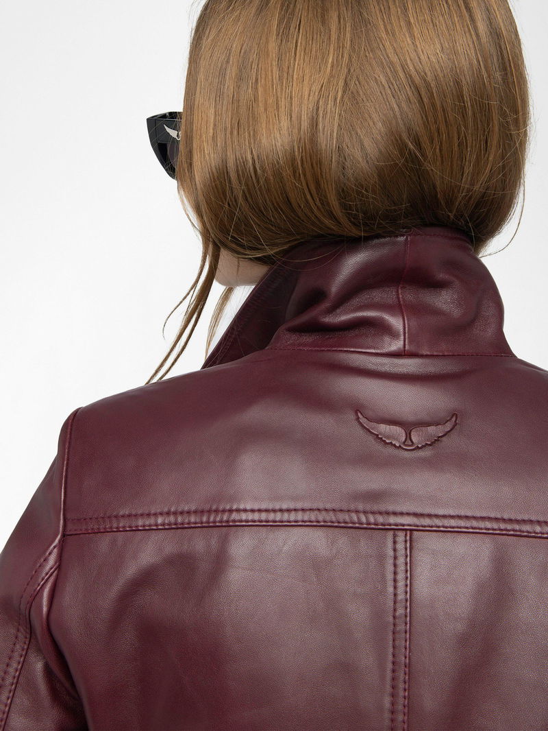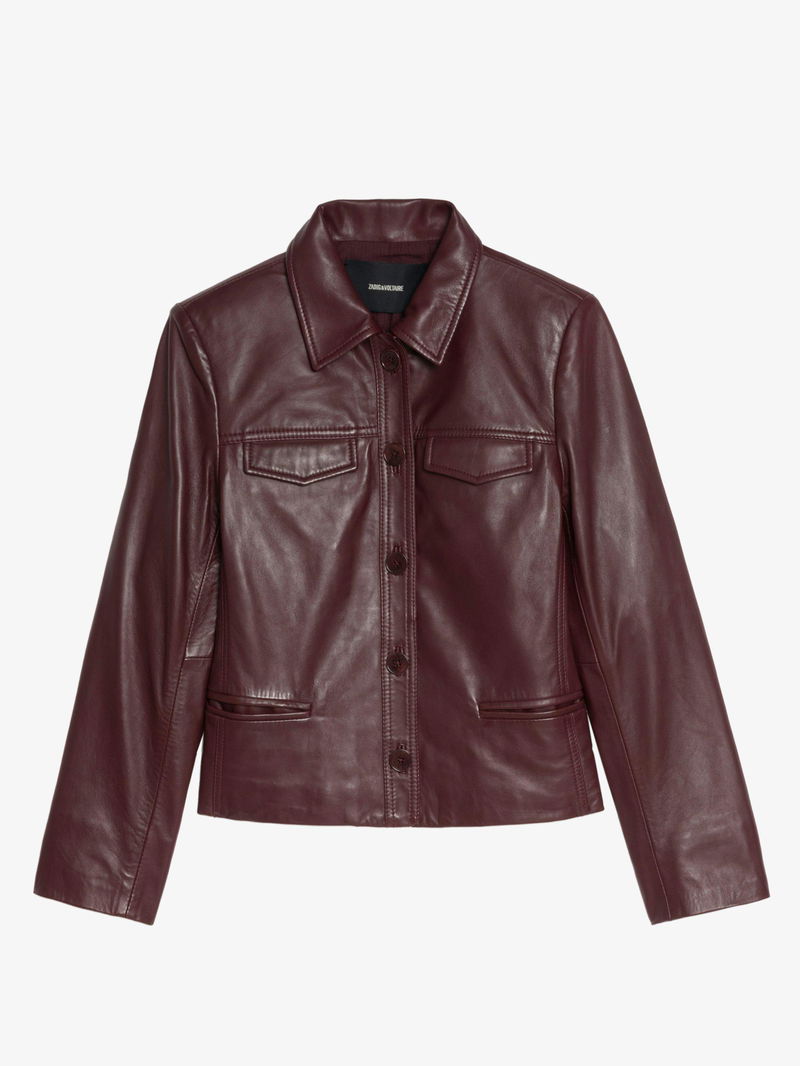 Fitted leather jacket - Classic collar - Button closure - 2 side piped pockets and 2 patch chest pockets - Long sleeves with shoulder pads - Fitted cut.