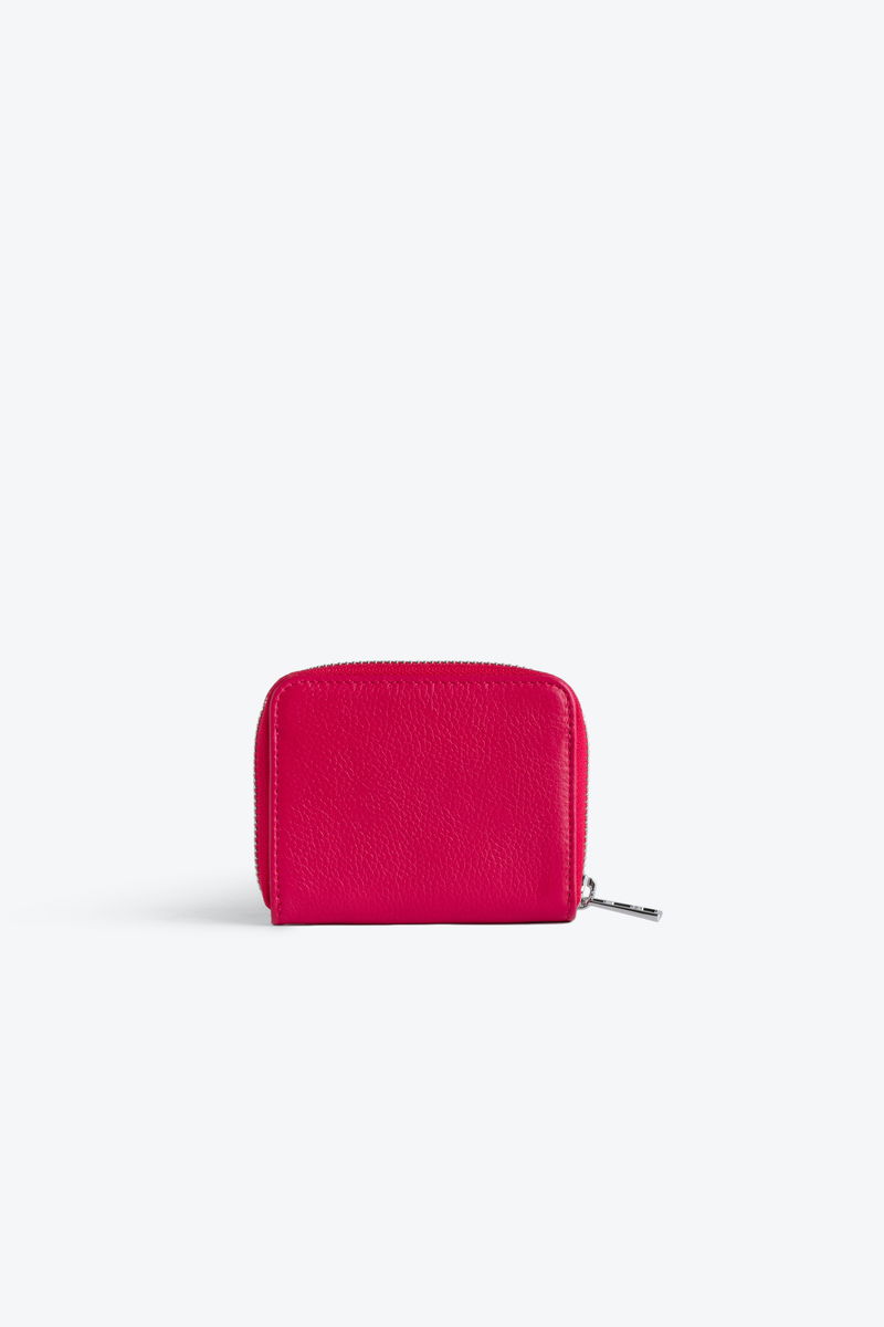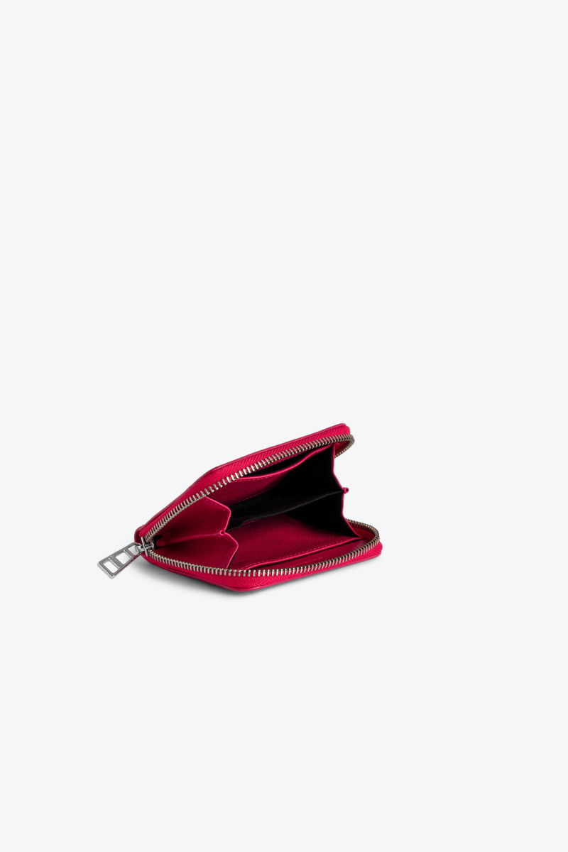 Women’s Mini ZV wallet in Podium pink grained leather. 2 gussets. Wings charm with tone-on-tone diamanté. Embossed Zadig&Voltaire branding.